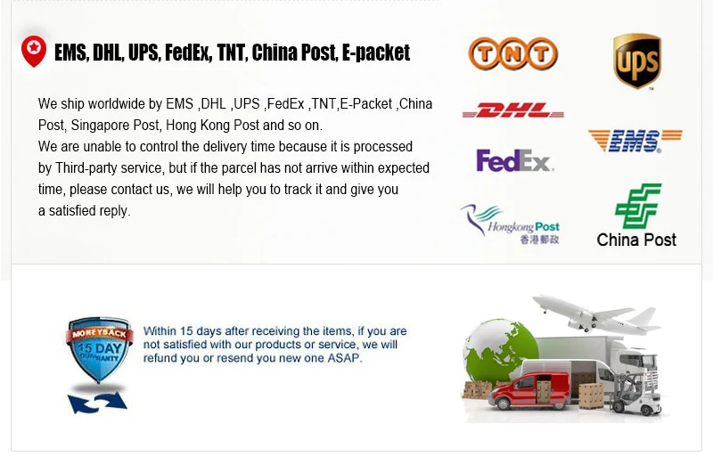 Packages from our warehouse in China will be shipped by ePacket or EMS depending on the weight and size of the product. Packages shipped from our US warehouse are shipped through USPS.