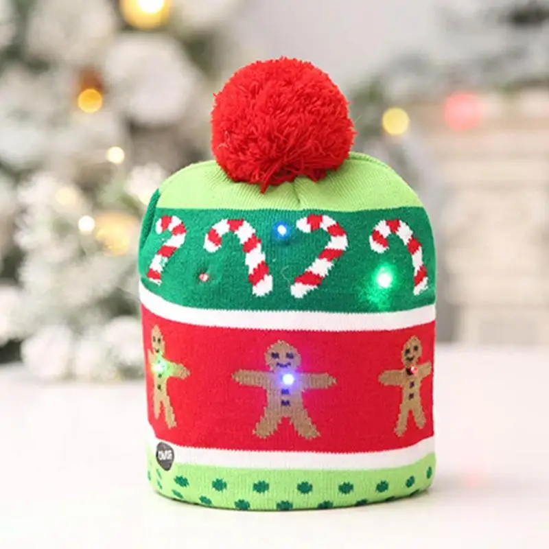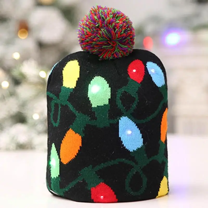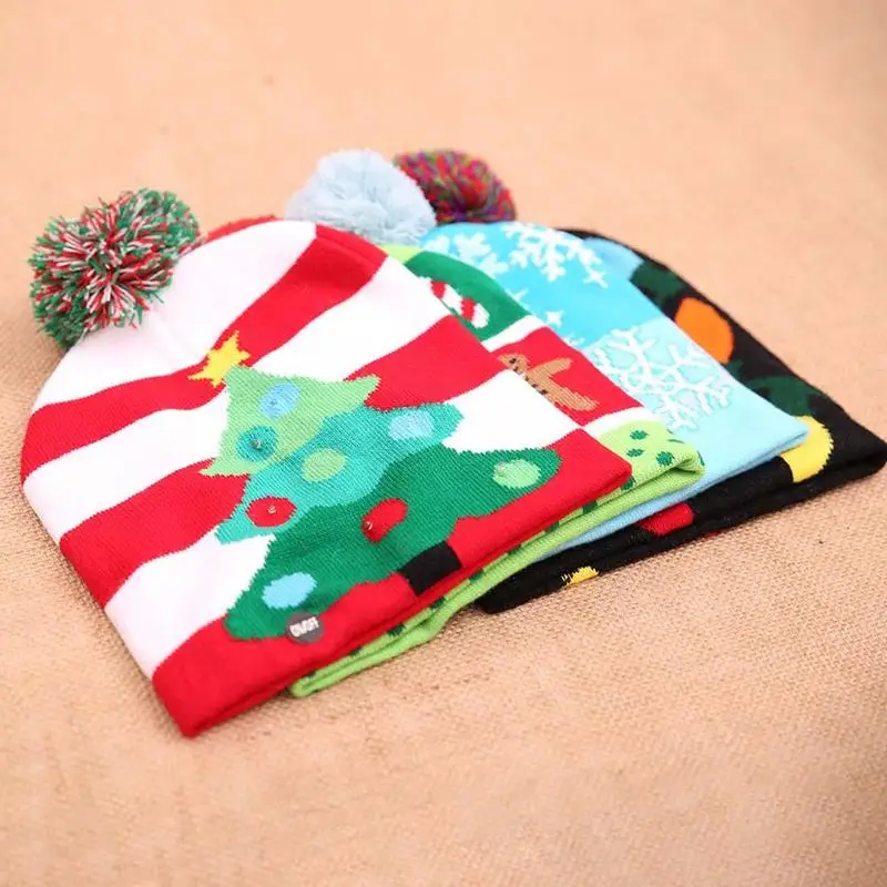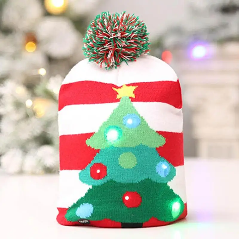 Lovely Christmas Hat Led Caps Christmas Tree Colorful Lamps Snow Cap Kids Adults Warm Hat New Year Christmas Snowflake Hat