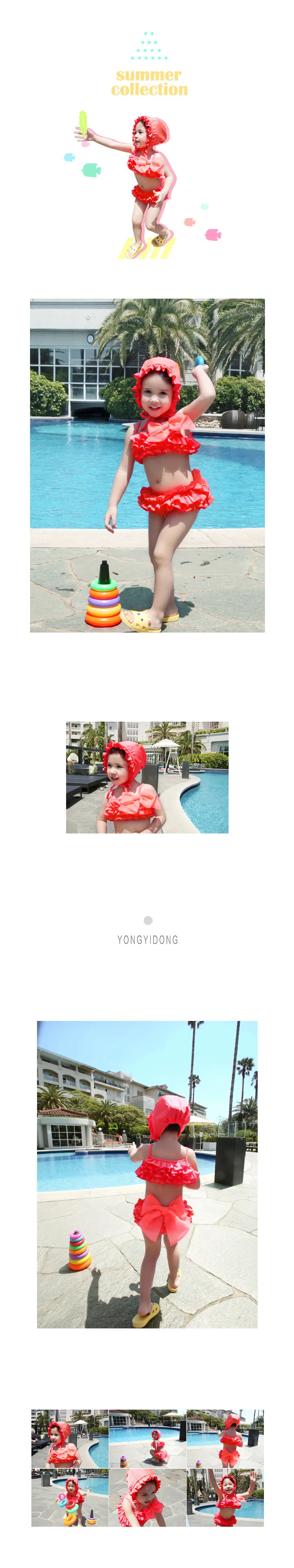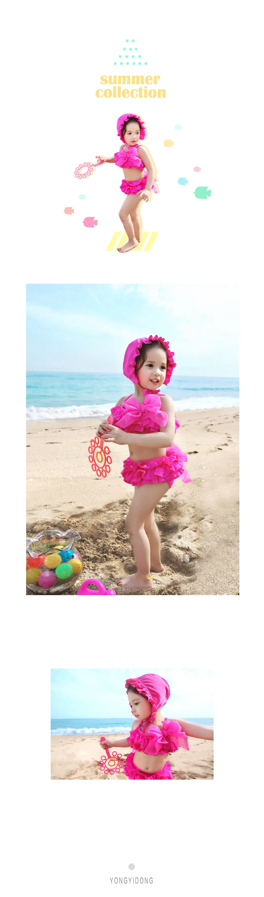Lovely Lace Bowknot Girls Swimwear Cute Baby Bikini Sets Falbala Kids Swimsuits for Girl Bikinis with Cap 2 – 8 Years