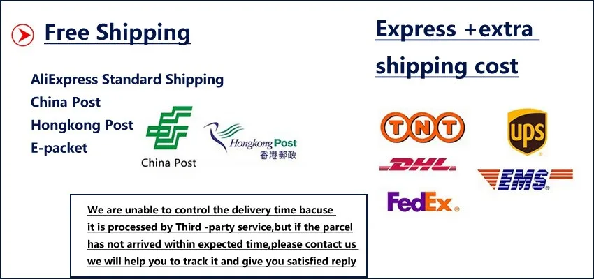 Packages from our warehouse in China will be shipped by ePacket or EMS depending on the weight and size of the product. Packages shipped from our US warehouse are shipped through USPS.