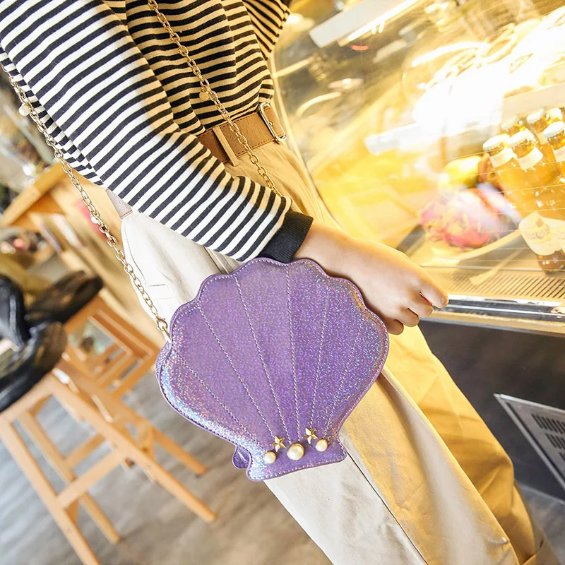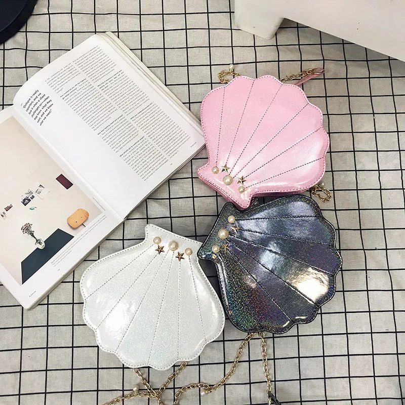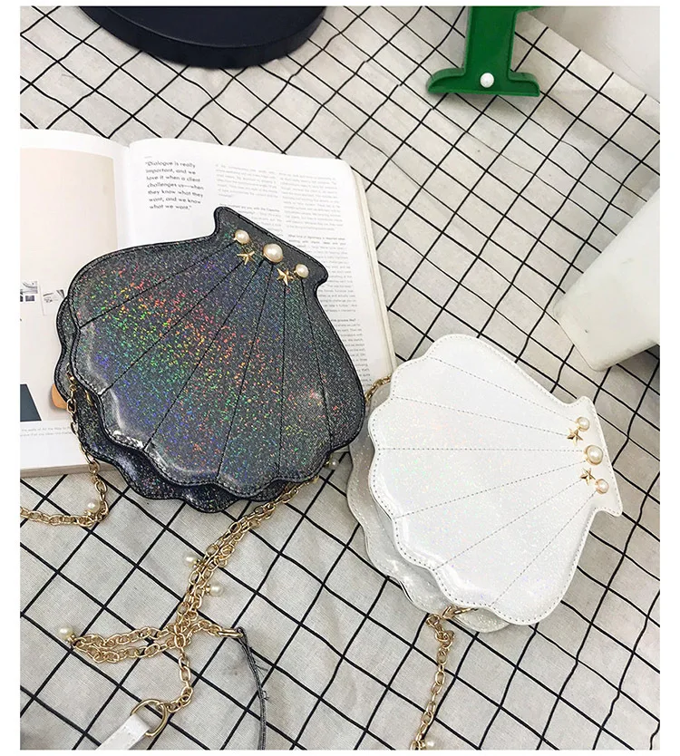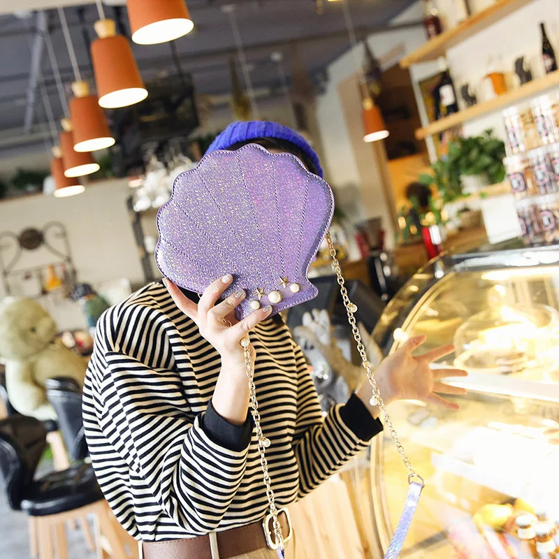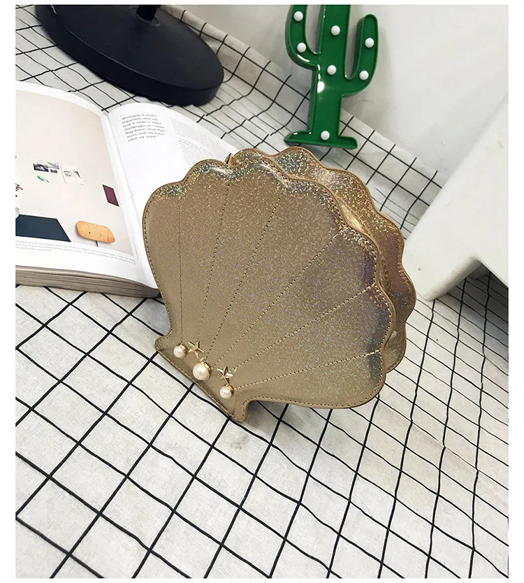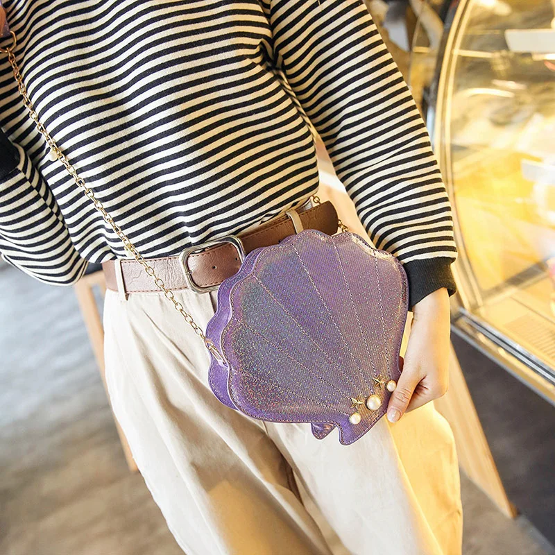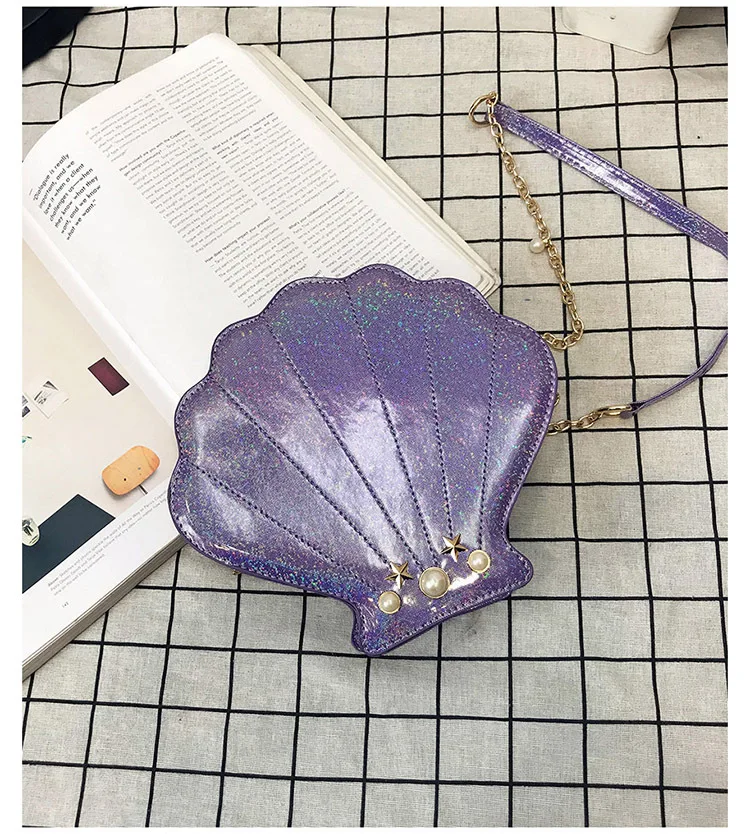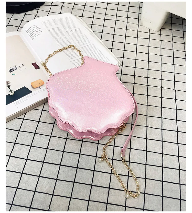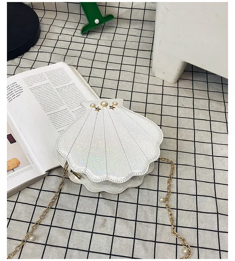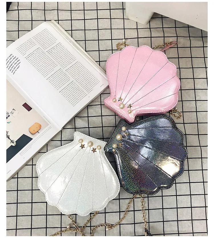 Lovely Laser Lolita Women Leather Handbags Pearl Shoulder Bag Sea Shell Shape Girls Crossbody Bags Bolsas Girls Messenger Bag Ne
