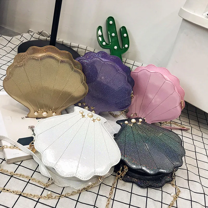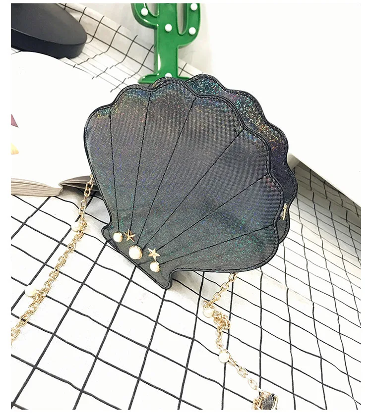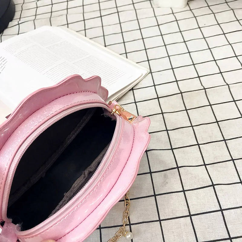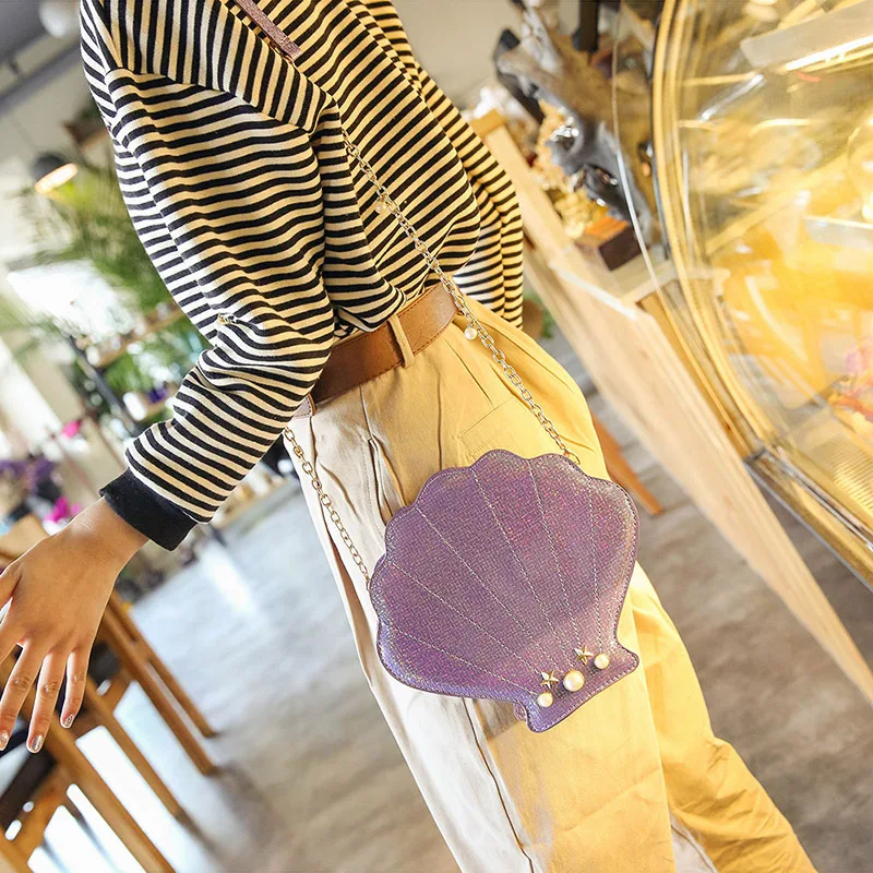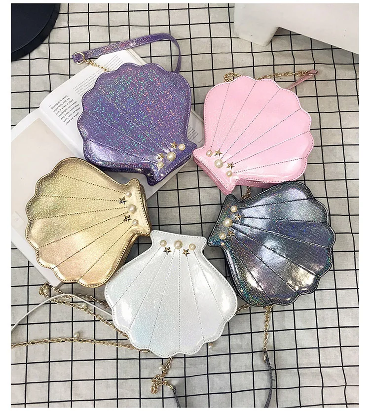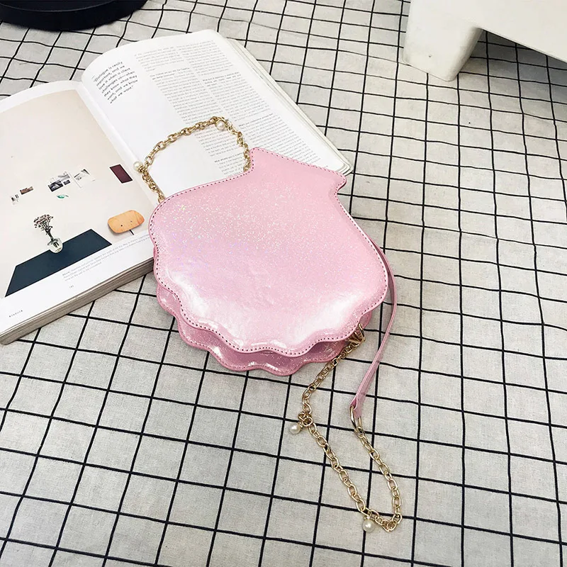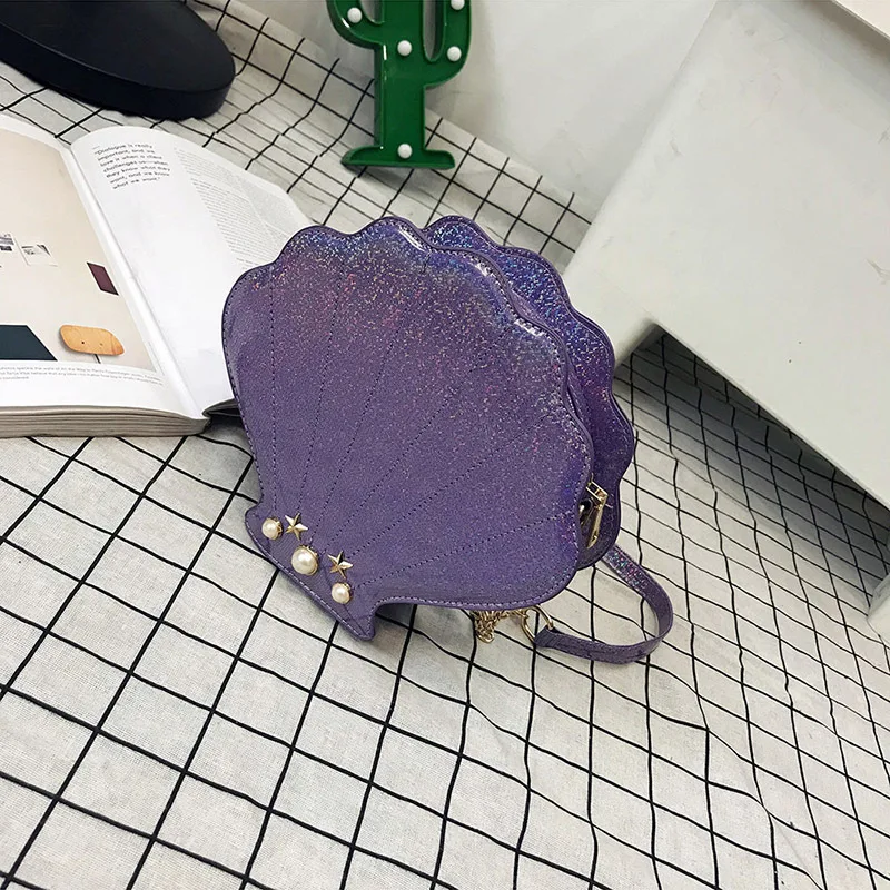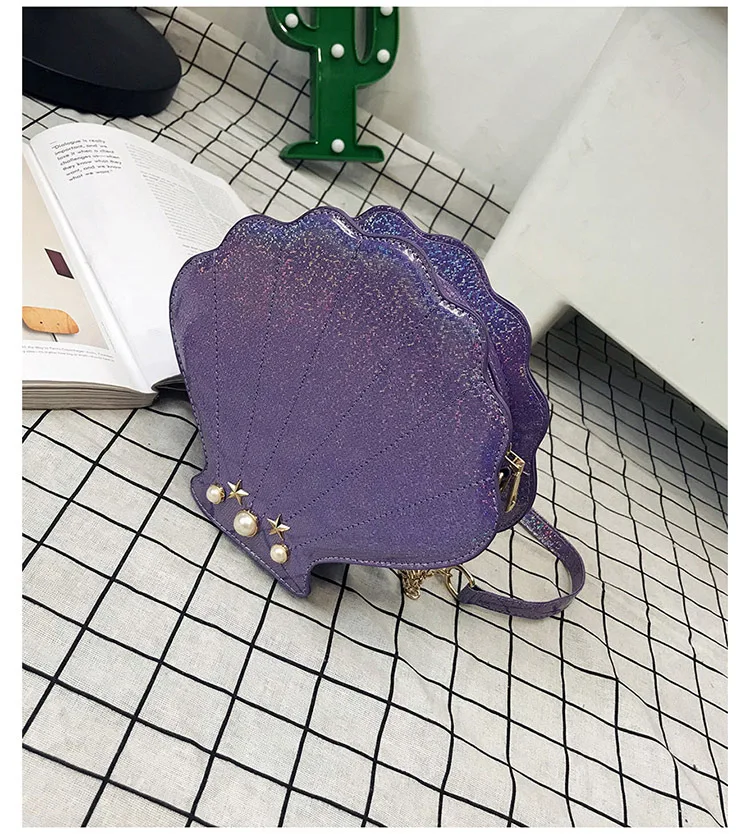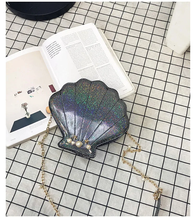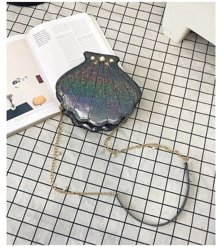 Lovely Laser Lolita Women Leather Handbags Pearl Shoulder Bag Sea Shell Shape Girls Crossbody Bags Bolsas Girls Messenger Bag Ne