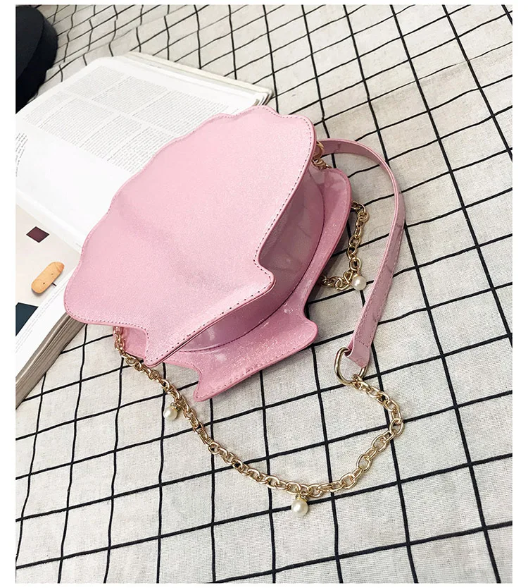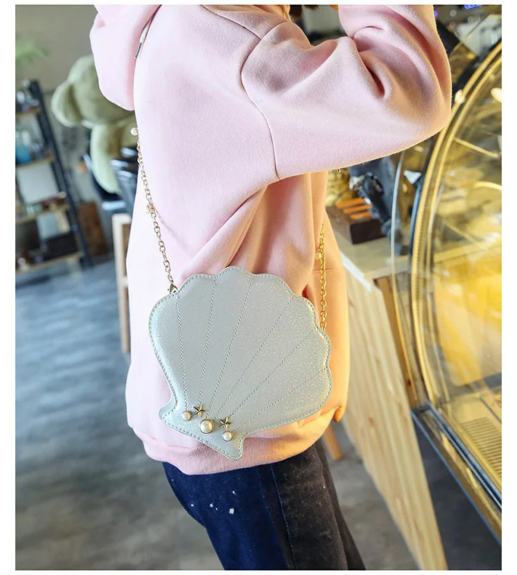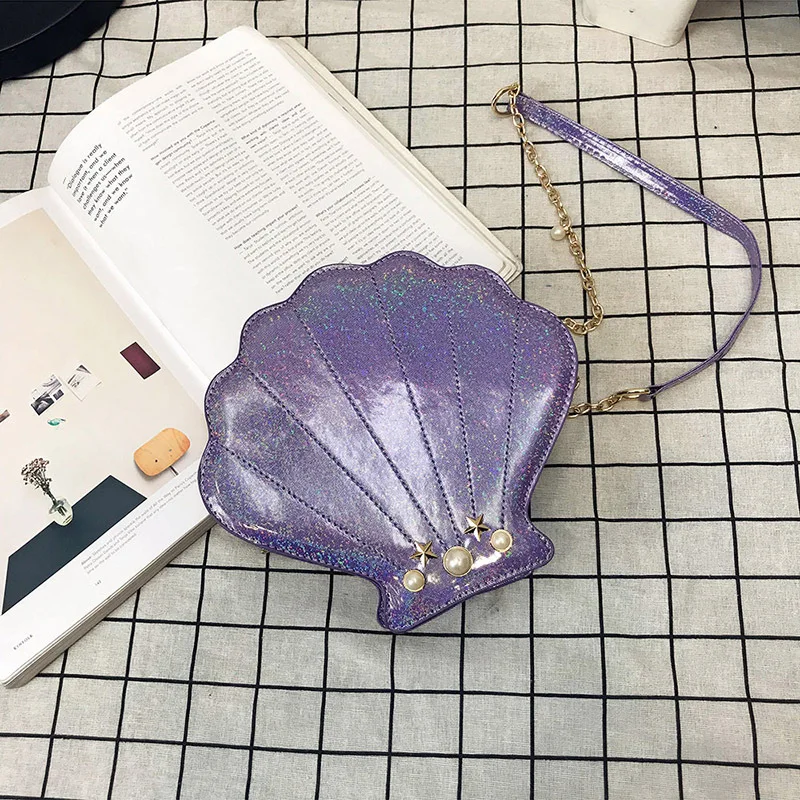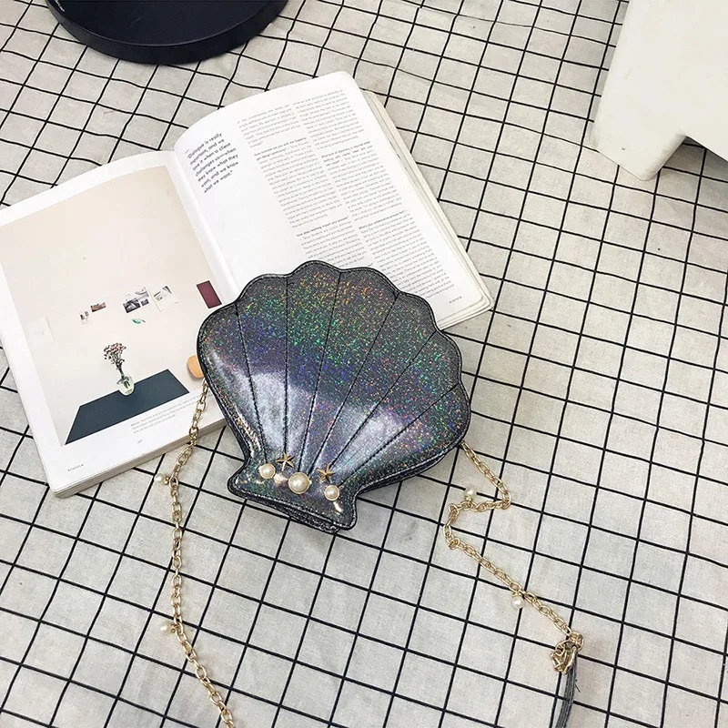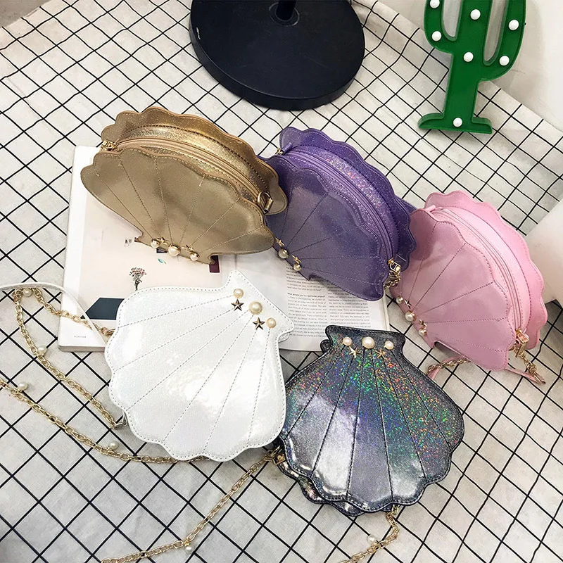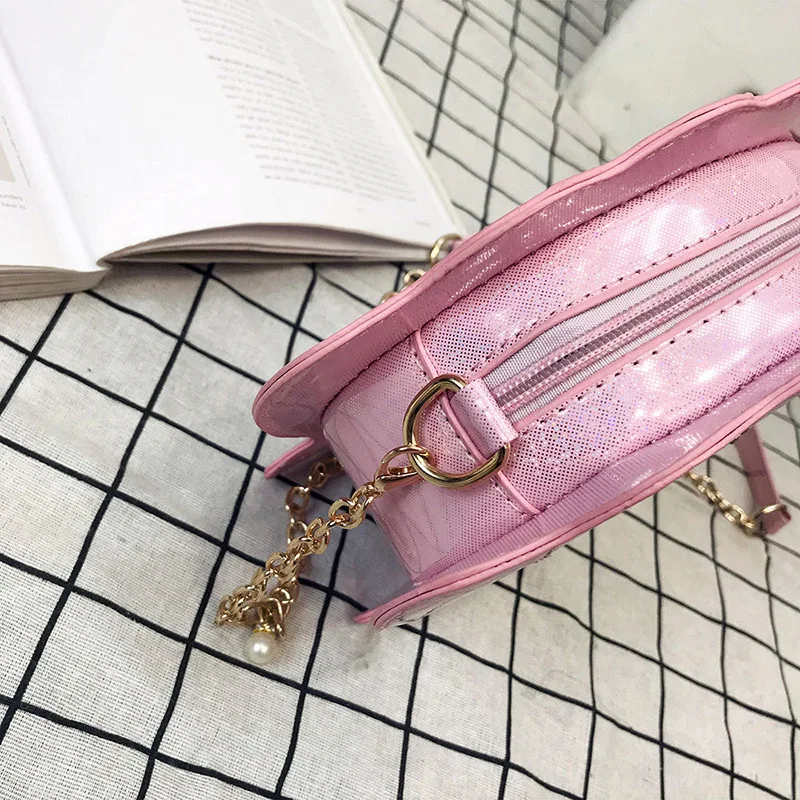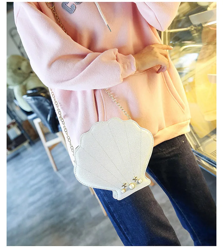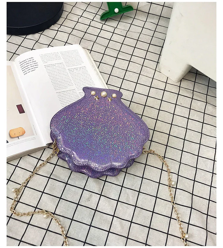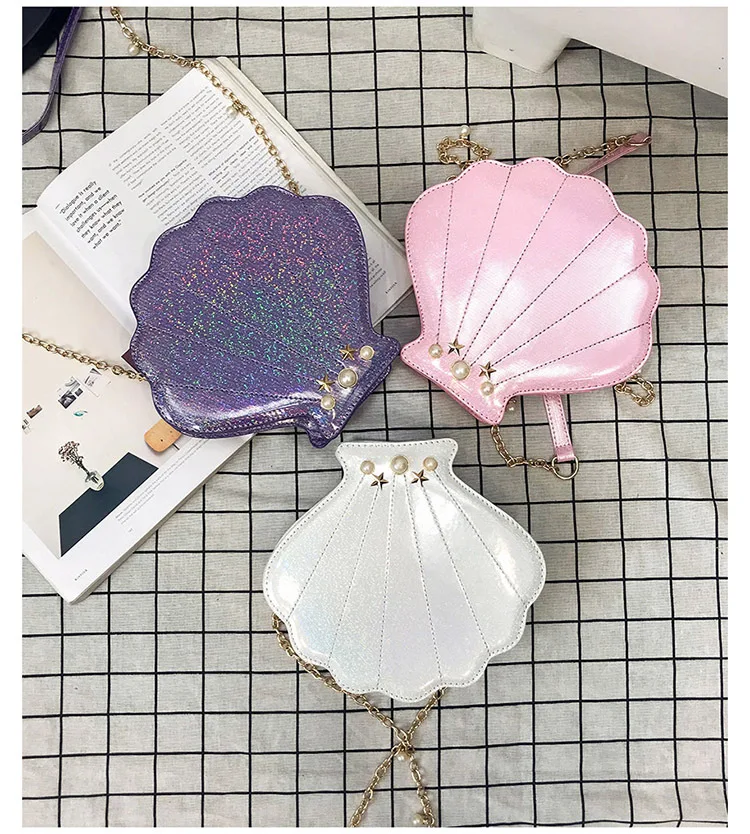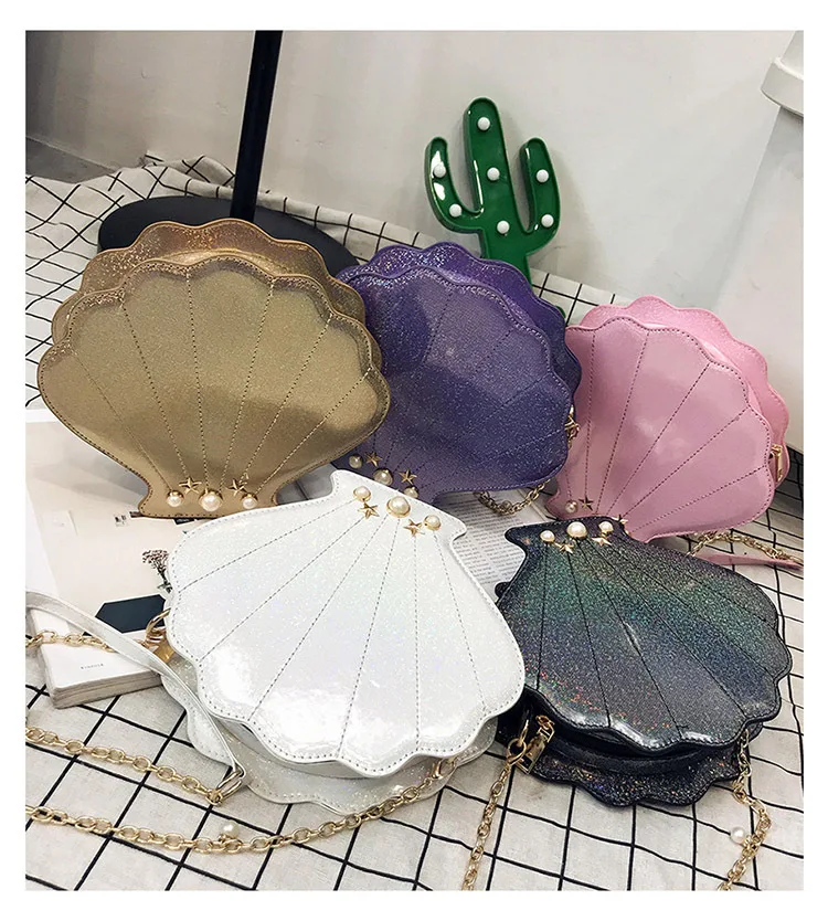 Lovely Laser Lolita Women Leather Handbags Pearl Shoulder Bag Sea Shell Shape Girls Crossbody Bags Bolsas Girls Messenger Bag Ne