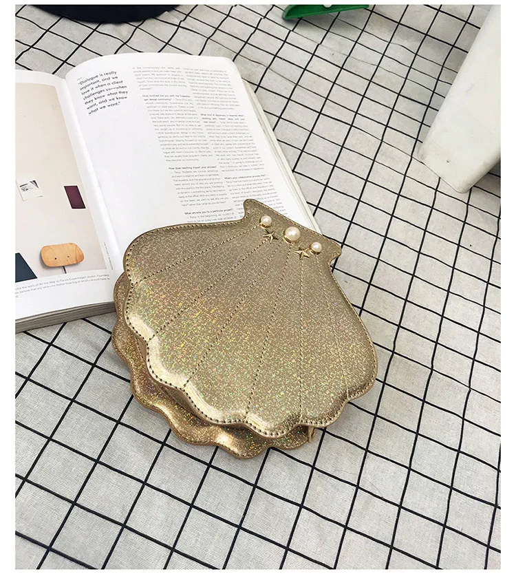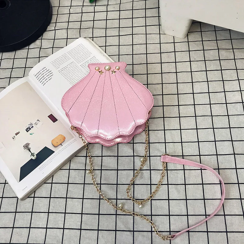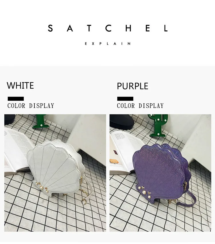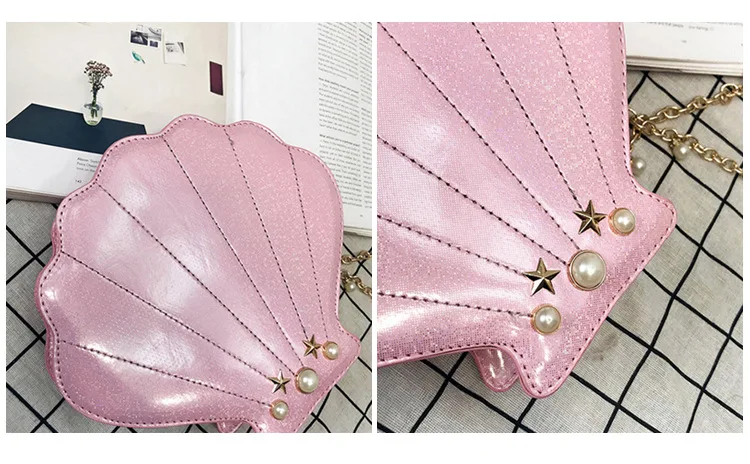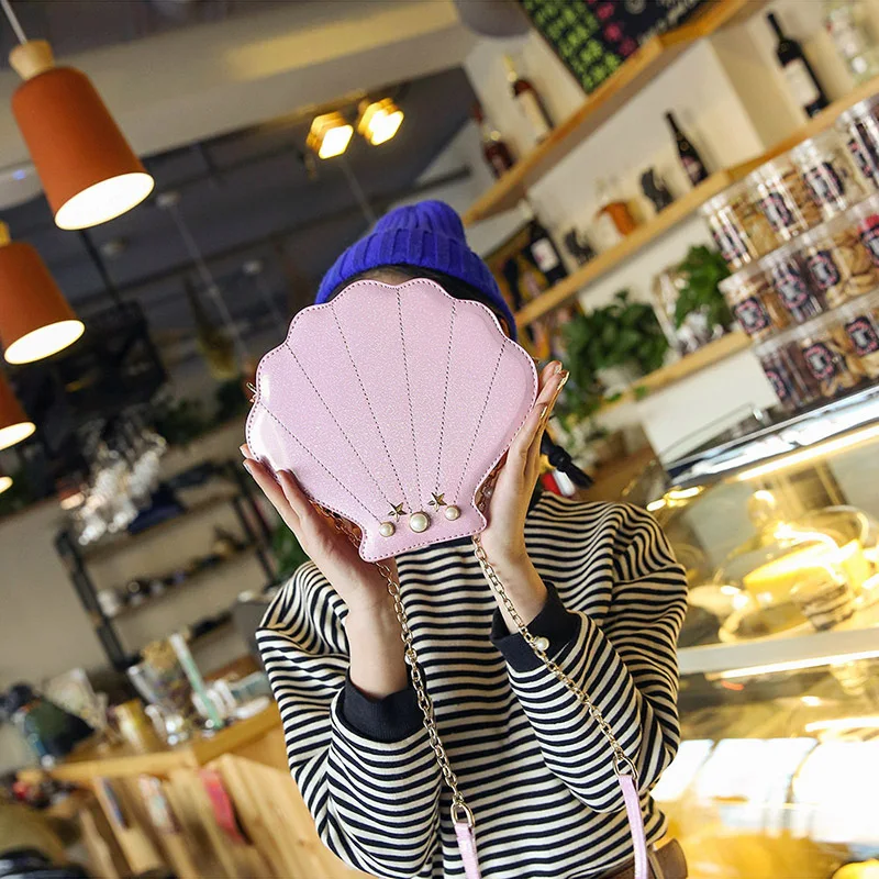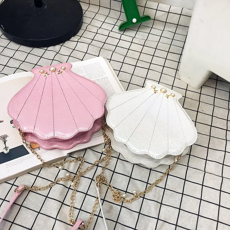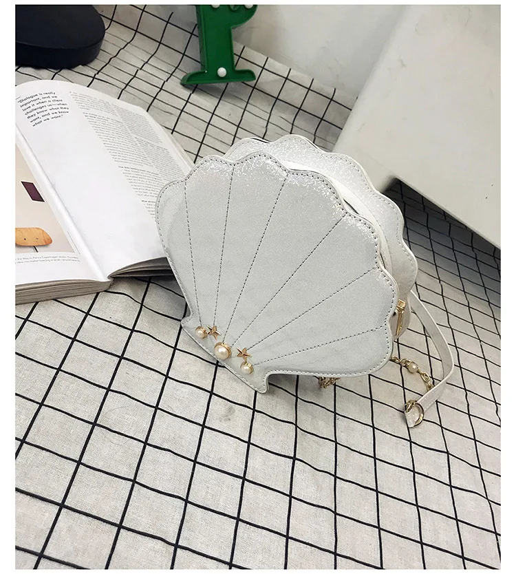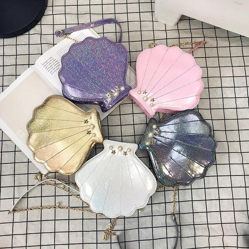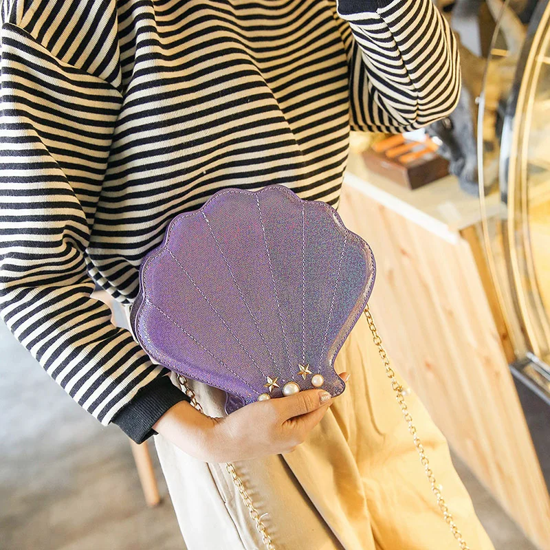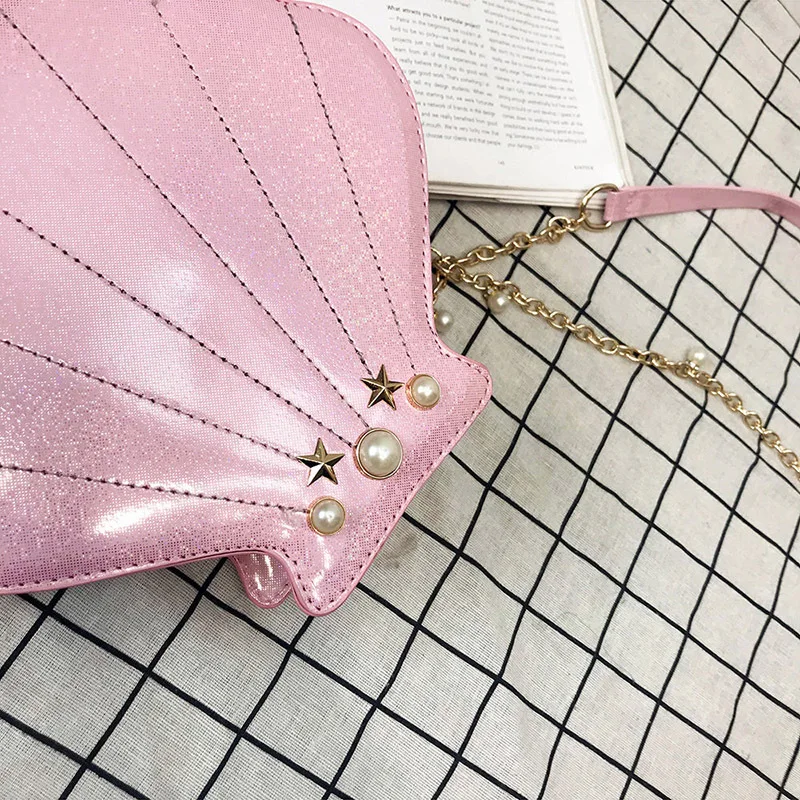 Lovely Laser Lolita Women Leather Handbags Pearl Shoulder Bag Sea Shell Shape Girls Crossbody Bags Bolsas Girls Messenger Bag Ne