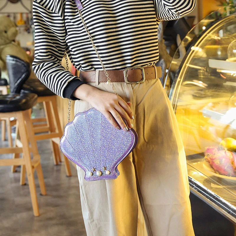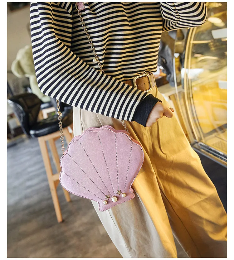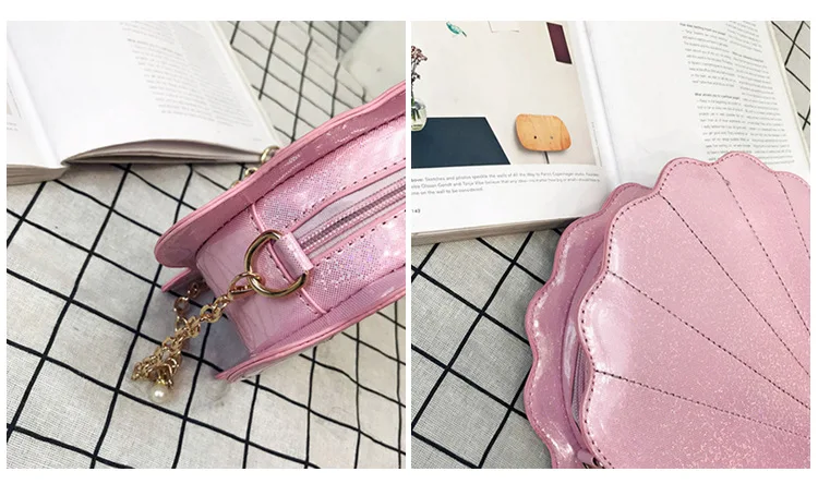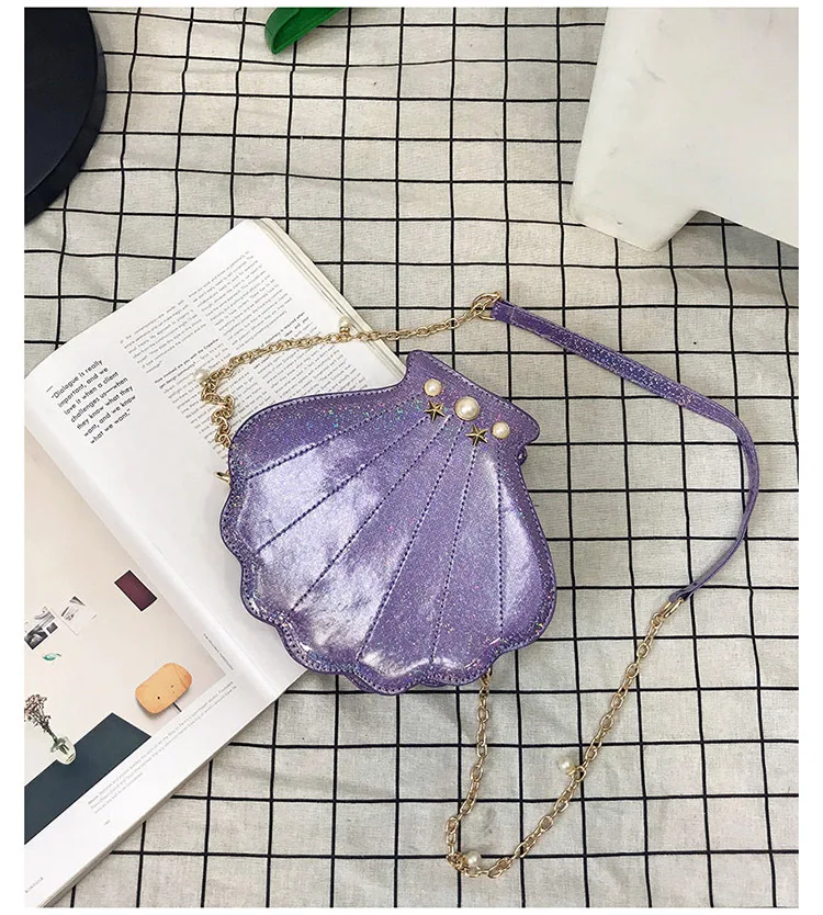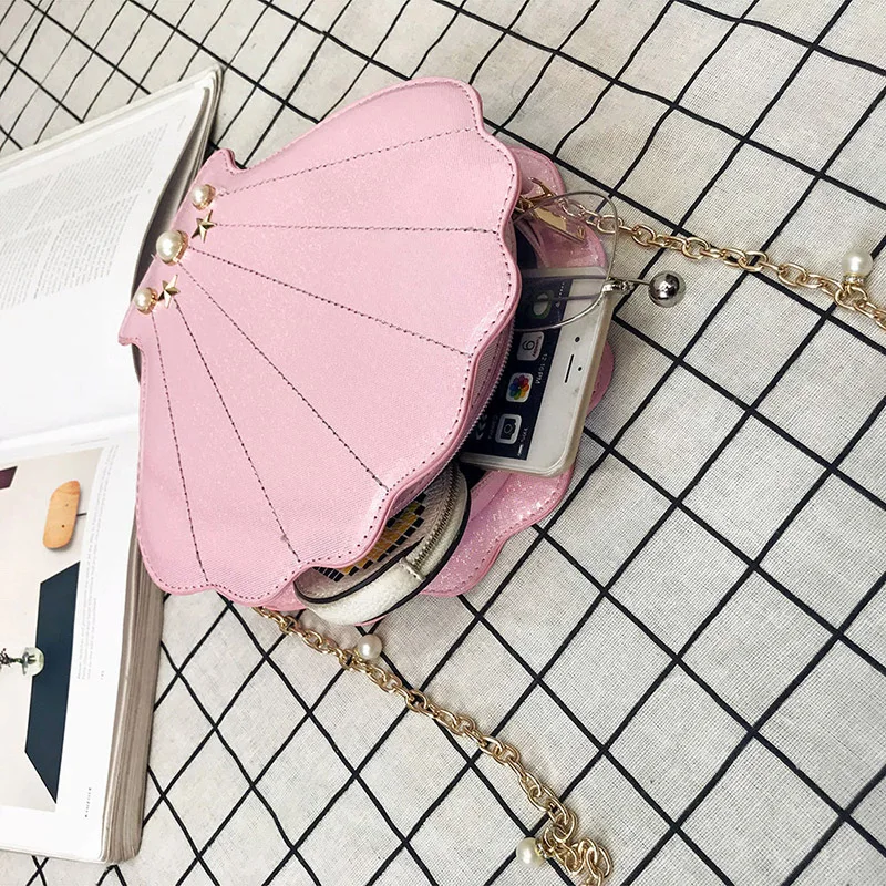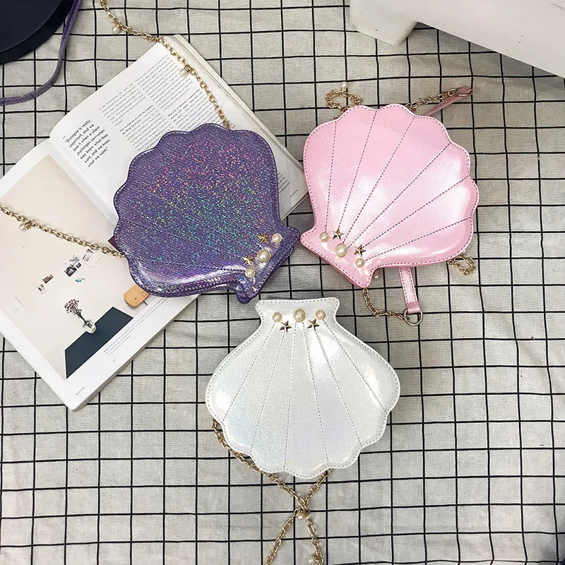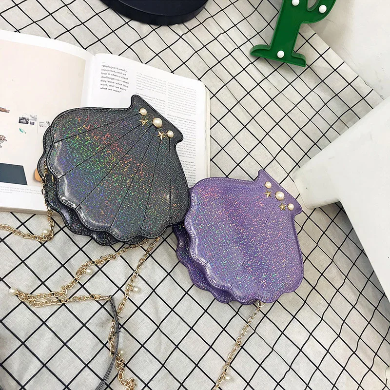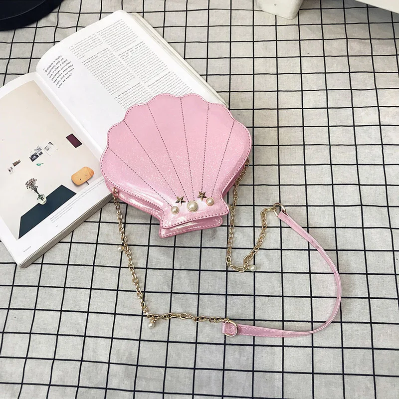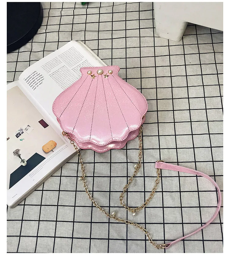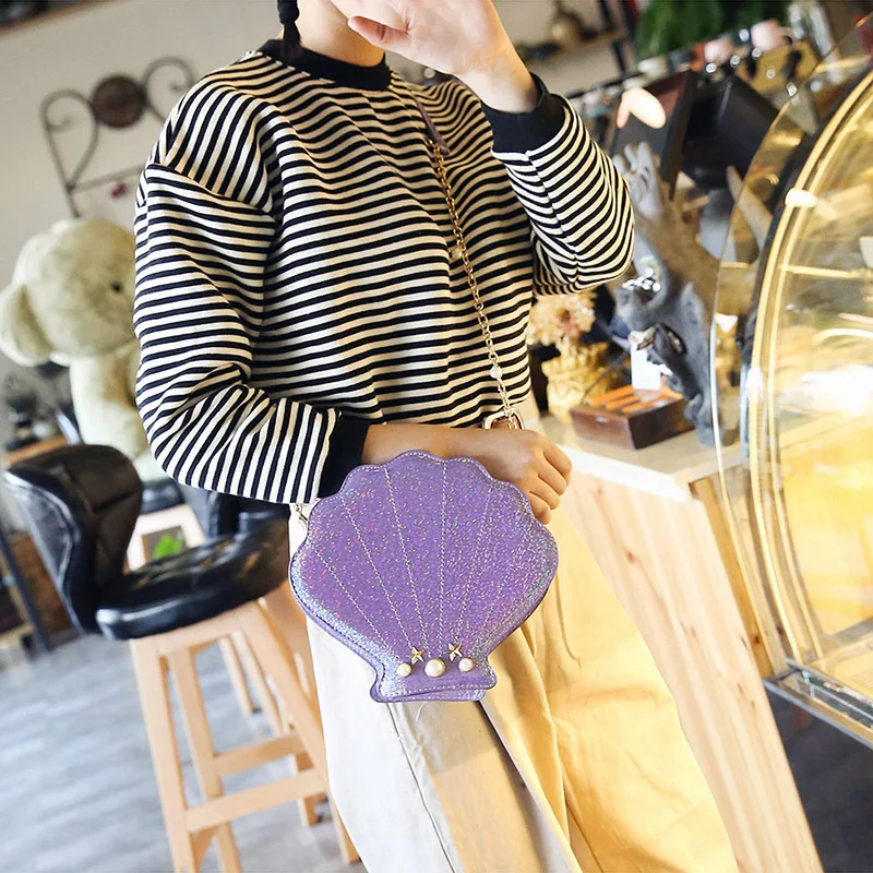 Lovely Laser Lolita Women Leather Handbags Pearl Shoulder Bag Sea Shell Shape Girls Crossbody Bags Bolsas Girls Messenger Bag Ne