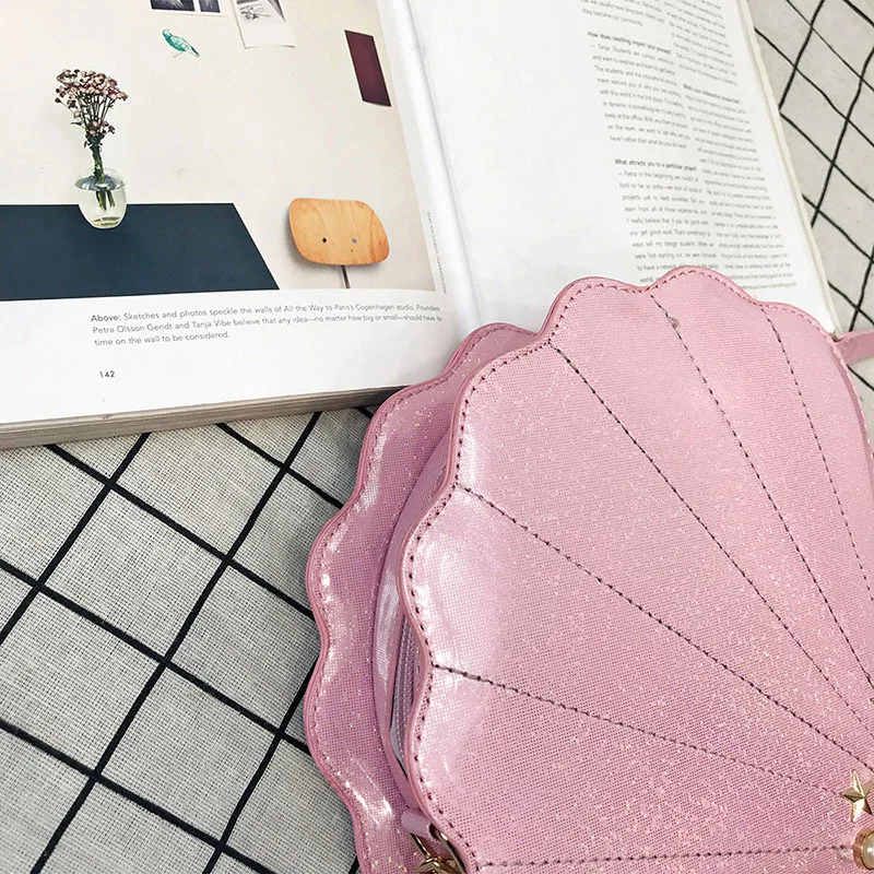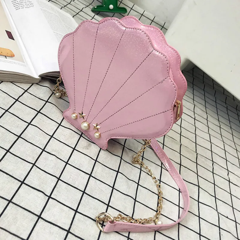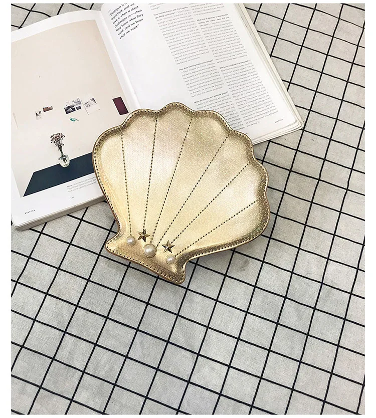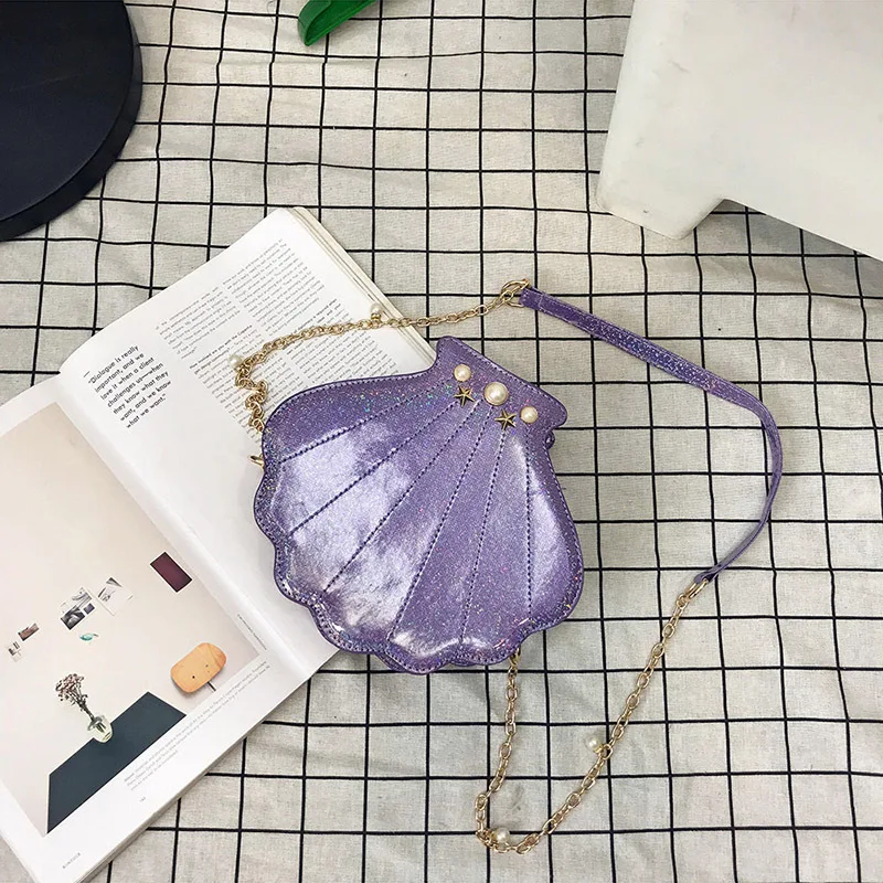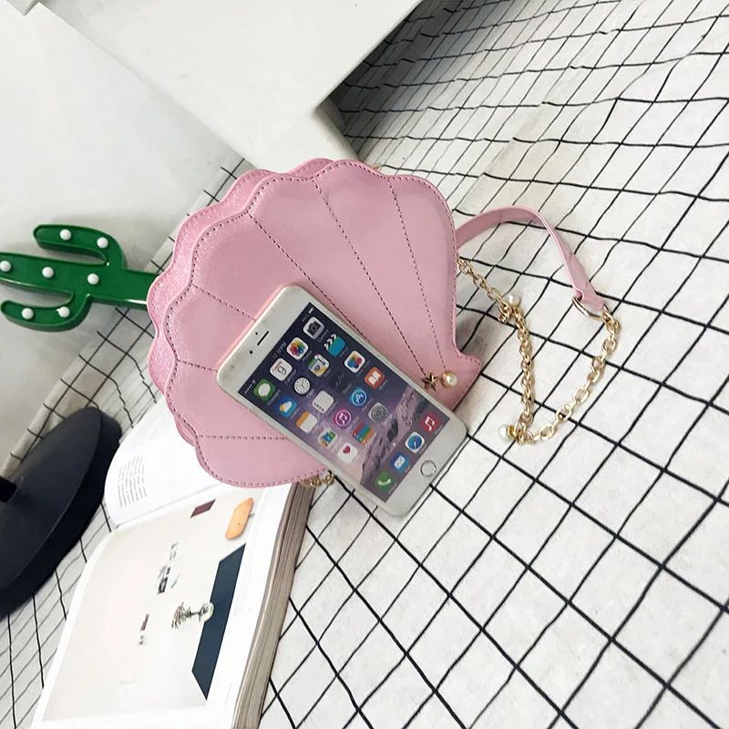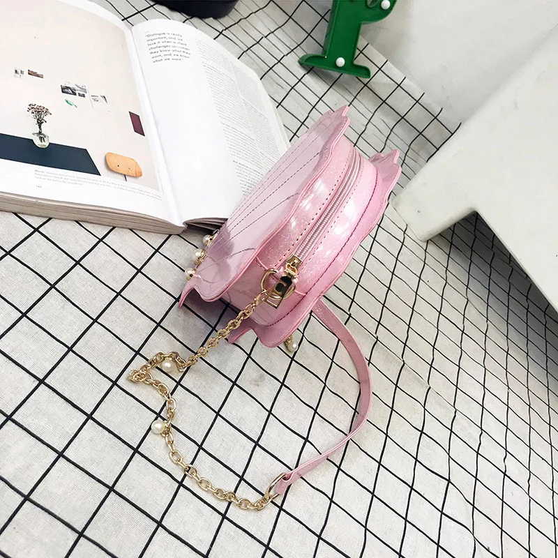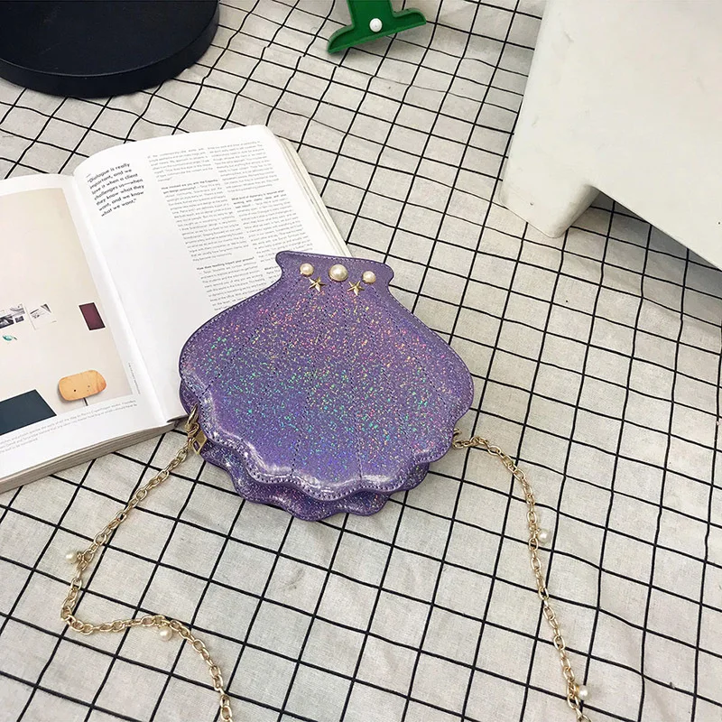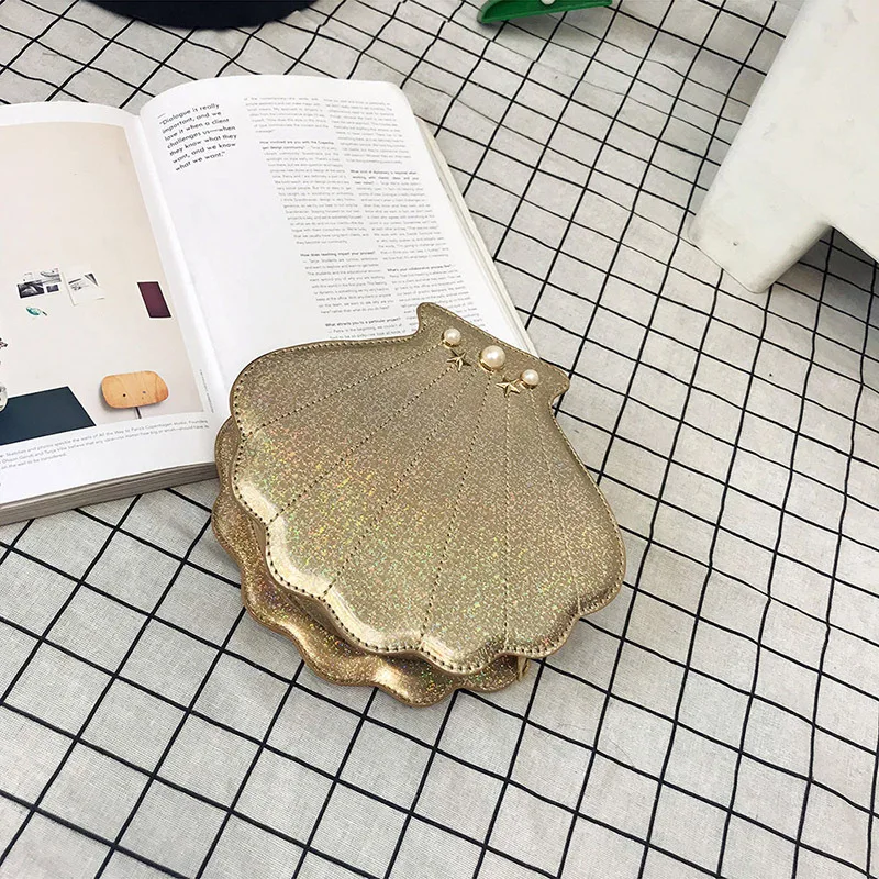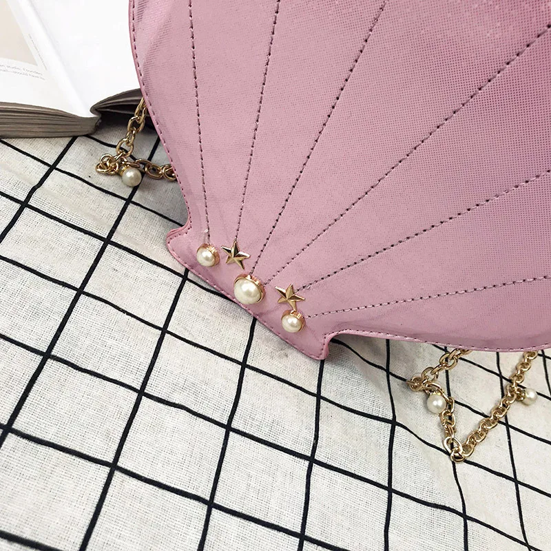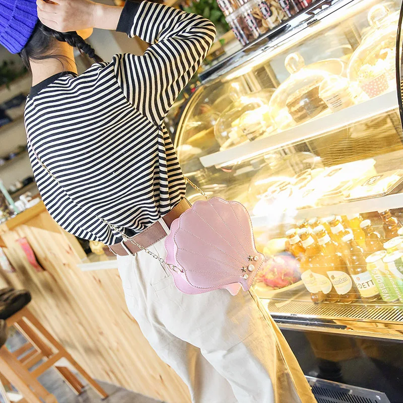 Lovely Laser Lolita Women Leather Handbags Pearl Shoulder Bag Sea Shell Shape Girls Crossbody Bags Bolsas Girls Messenger Bag Ne