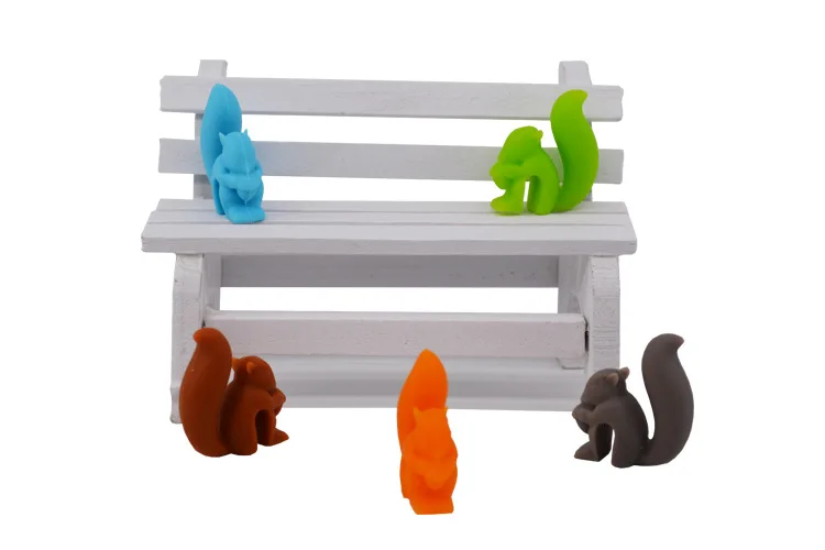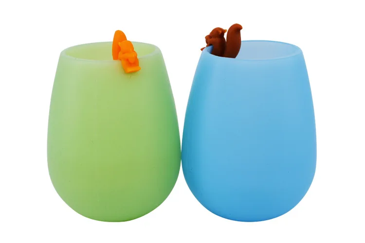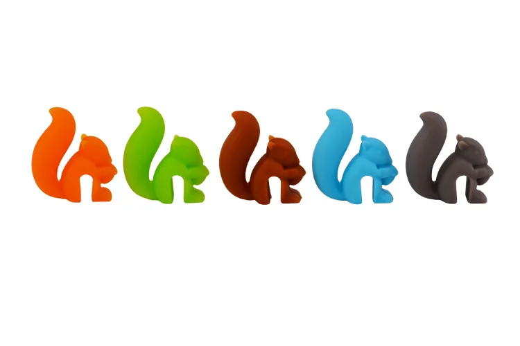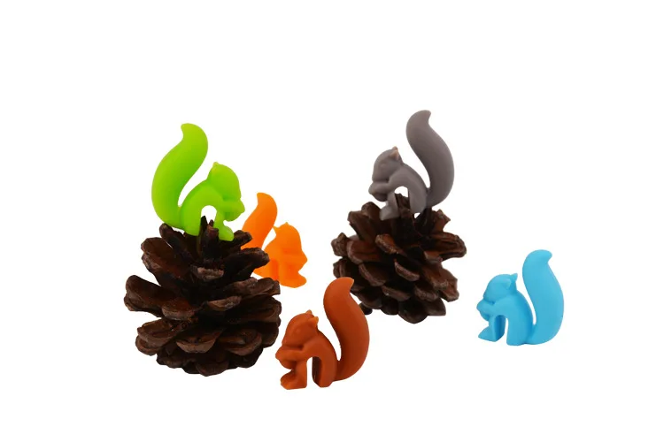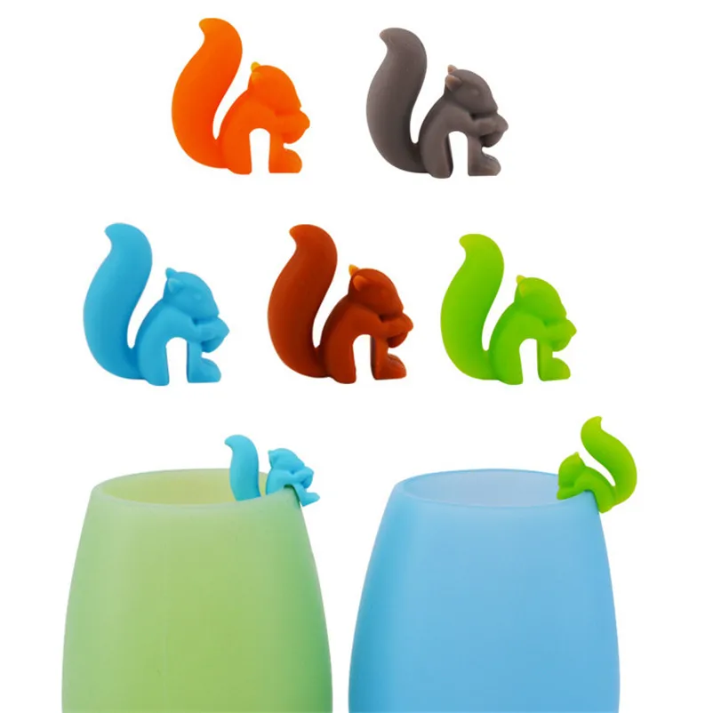 Package:5 pcs/set Cute Squirrel Wine Glass Labels Silicone Cup Marker Party Supplies