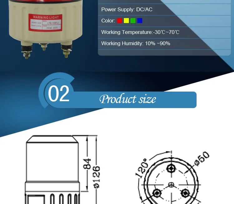 Suitable for alarm at a dangerous area in industrial and mineral enterprises,at the duty box,on the top of a vehicle etc.