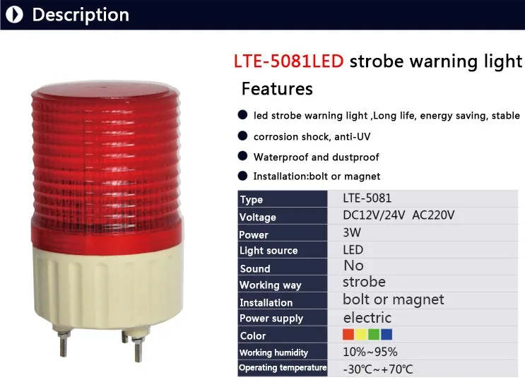 LTE-5081 Signal Led Strobe 3W Warning Light With Bolt Base DC12V/24V/AC220V Emergency Beacon Alarm Light Lamp