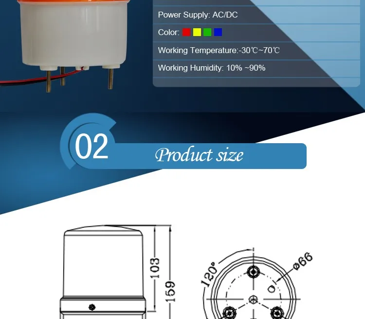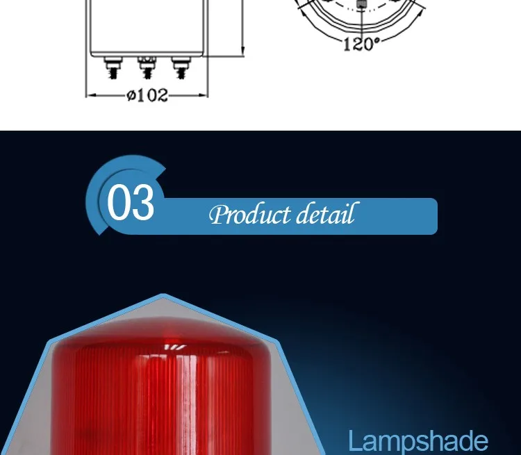 Suitable for alarm at a dangerous area in industrial and mineral enterprises,at the duty box,on the top of a vehicle etc.