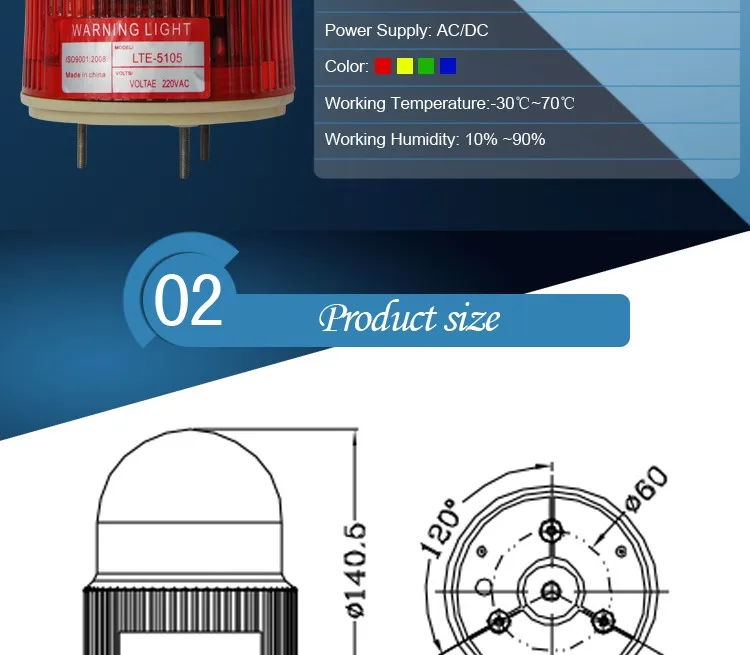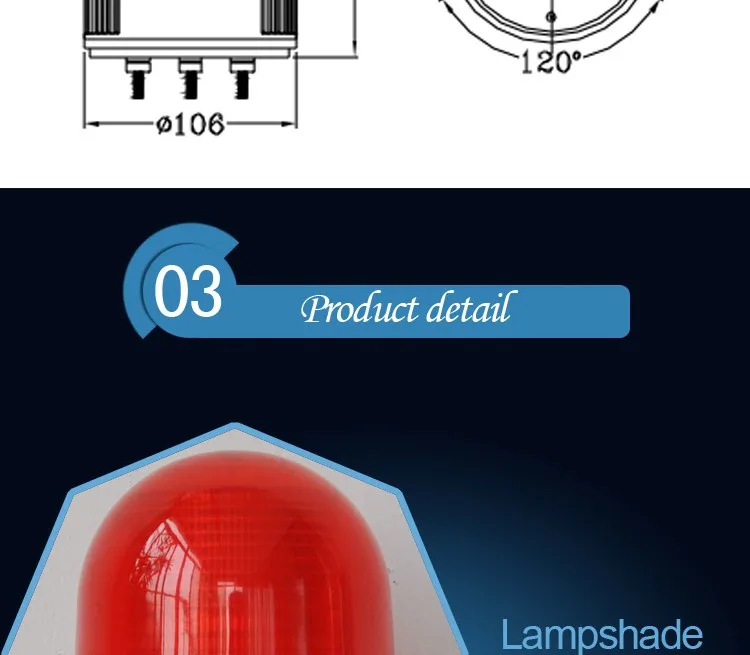 Suitable for alarm at a dangerous area in industrial and mineral enterprises,at the duty box,on the top of a vehicle etc.
