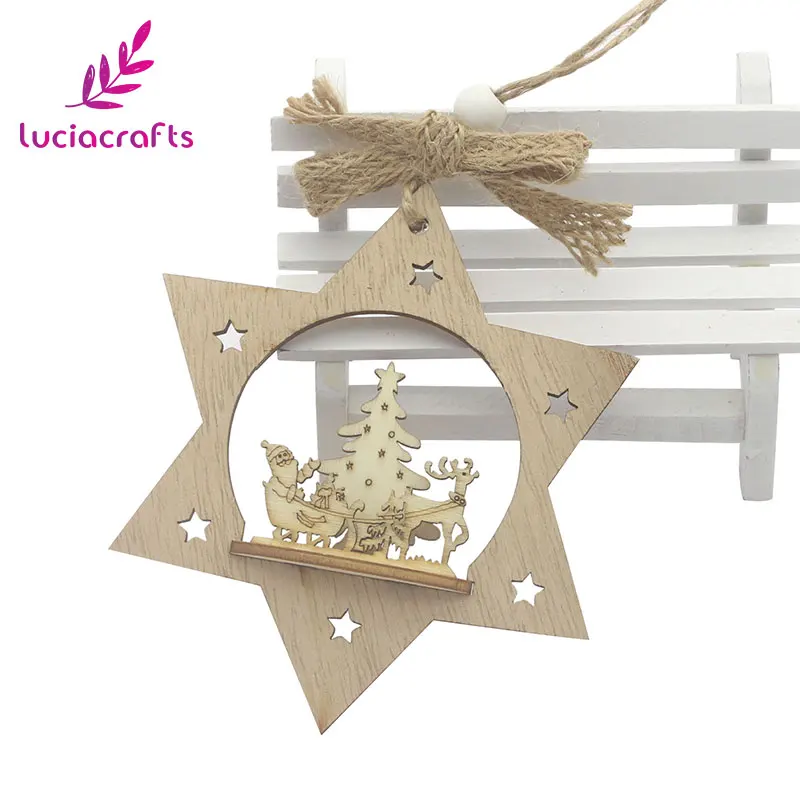 Lucia crafts 1piece/lot 11.5*9.5cm Wooden Pendant For Christmas Tree Ornaments Xmas Party Home Decoration 058002053
