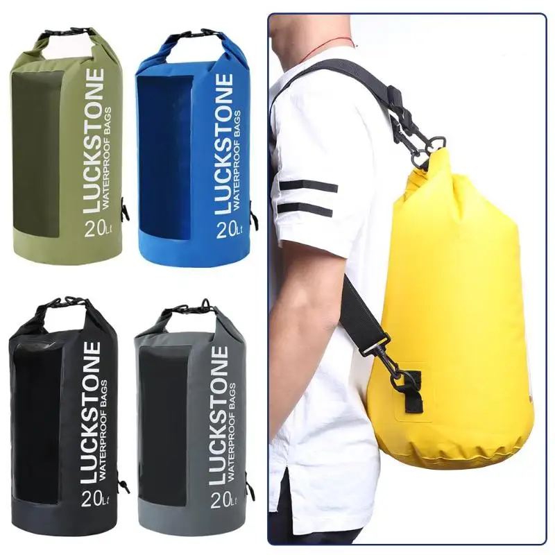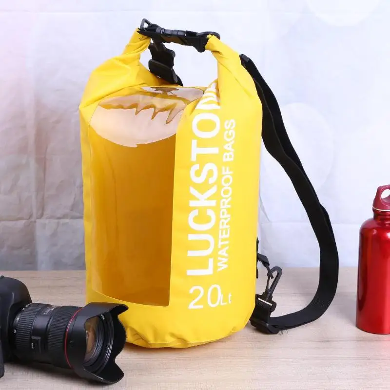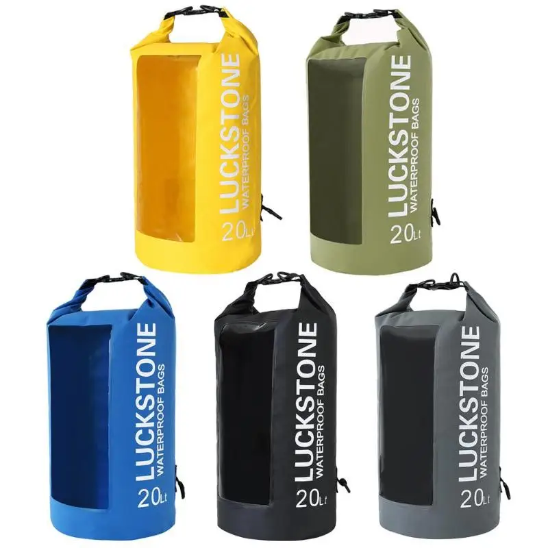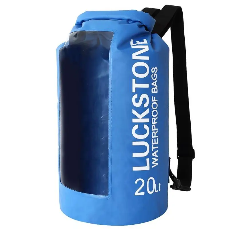 5L/0L/20L Transparent Window Waterproof Bag Outdoor Camping Boating Kayaking Rafting PVC Drift Backpack