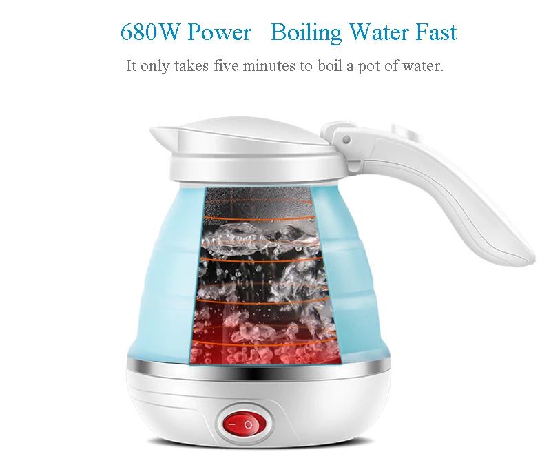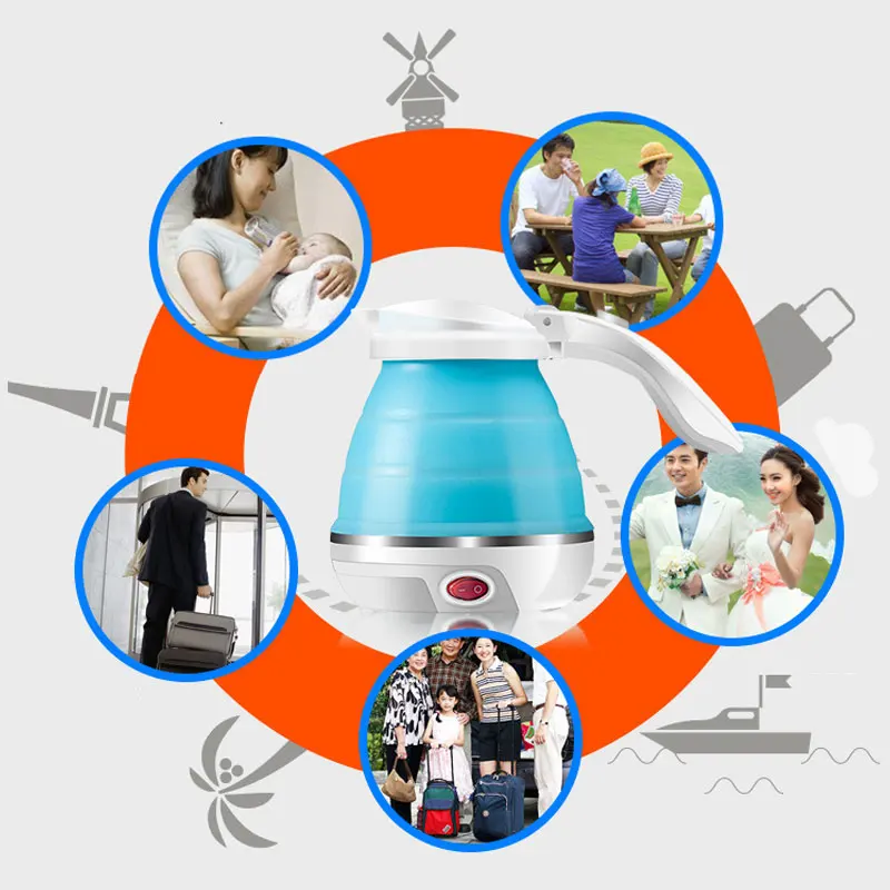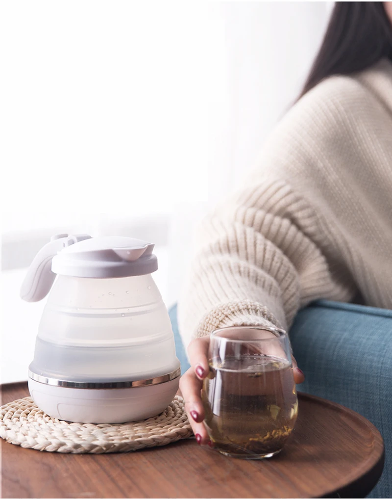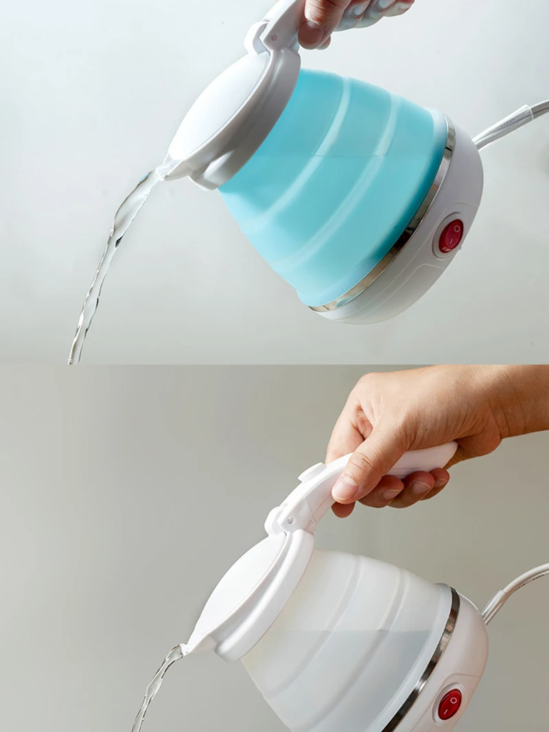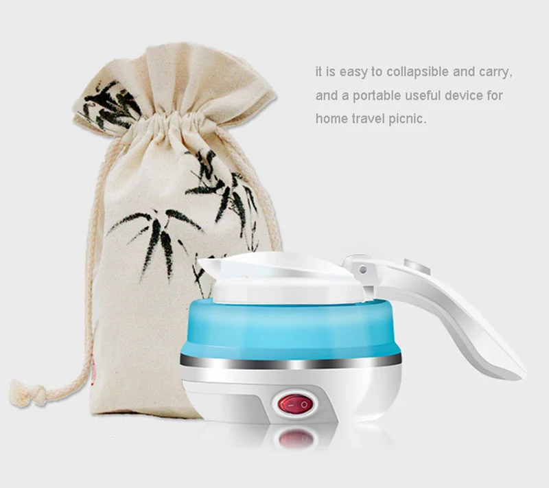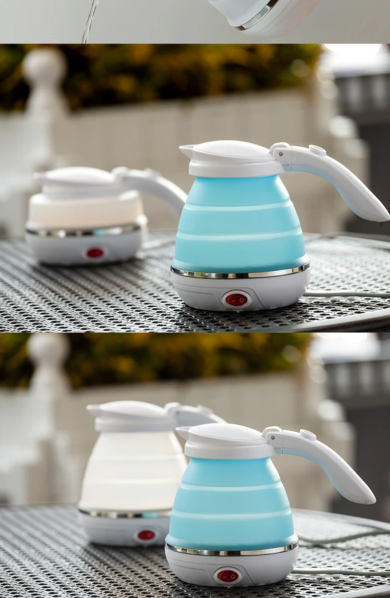 LUCOG Travel Foldable Electric Kettle Food Grade Boil Dry Protection Silicone Collapses Camping Kettle Dual Voltage 110-220V