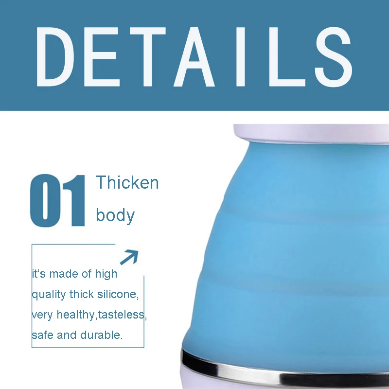 The foldable kettle is made of safe food grade protective material.