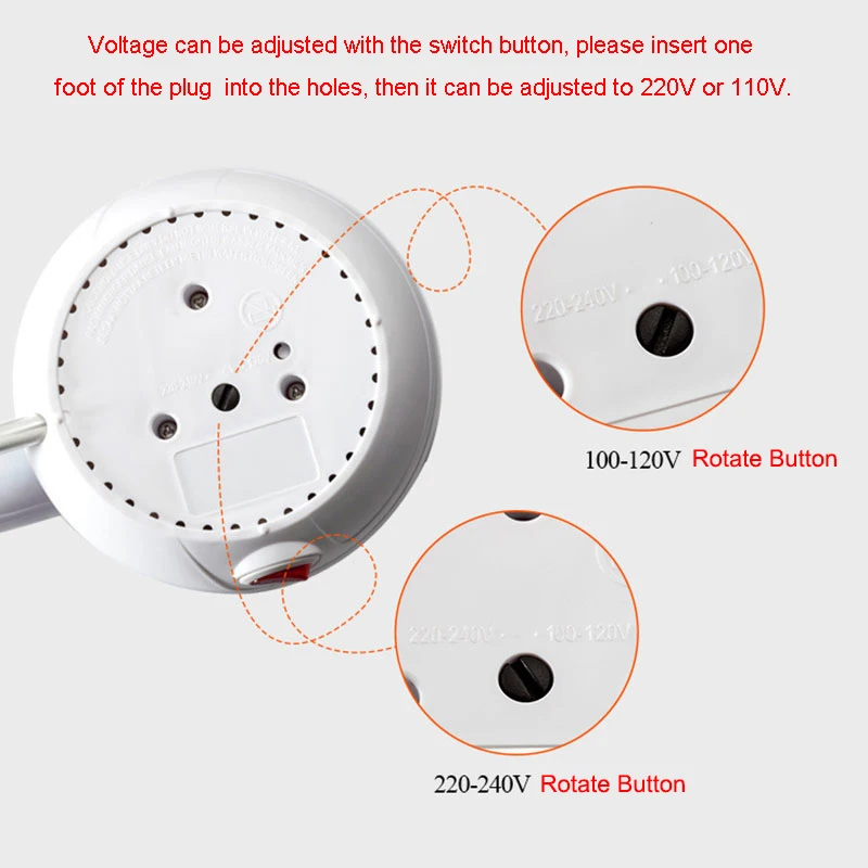 The dual 110/220 voltage knob at the base which can be use all over the world.