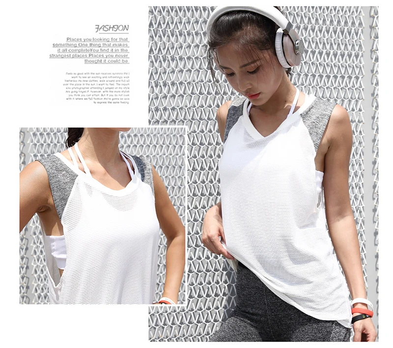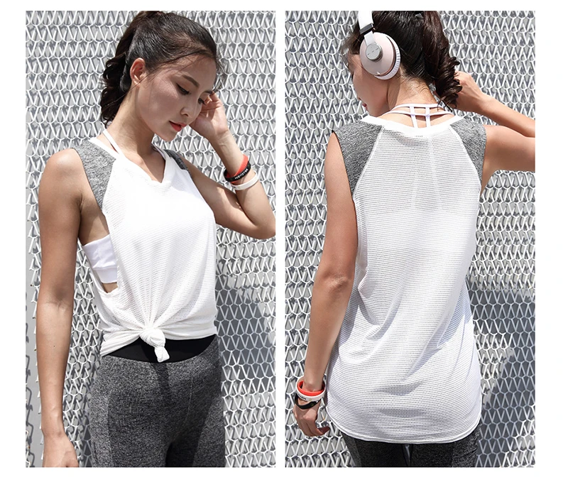 Lucylizz Sport Top Fitness Women Mesh Breathable Yoga Shirts Gym Sleeveless Sports T Shirts Running Tee Camisetas Mujer