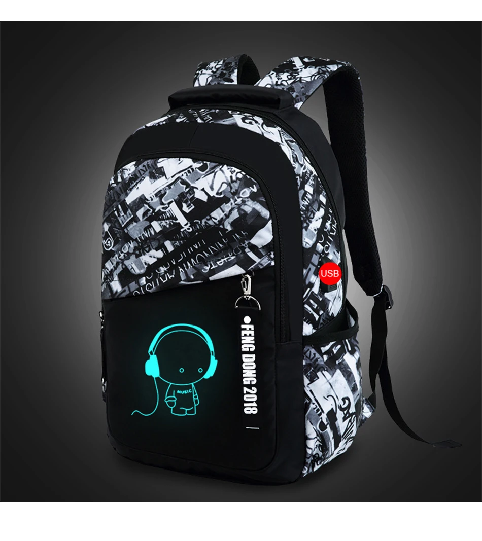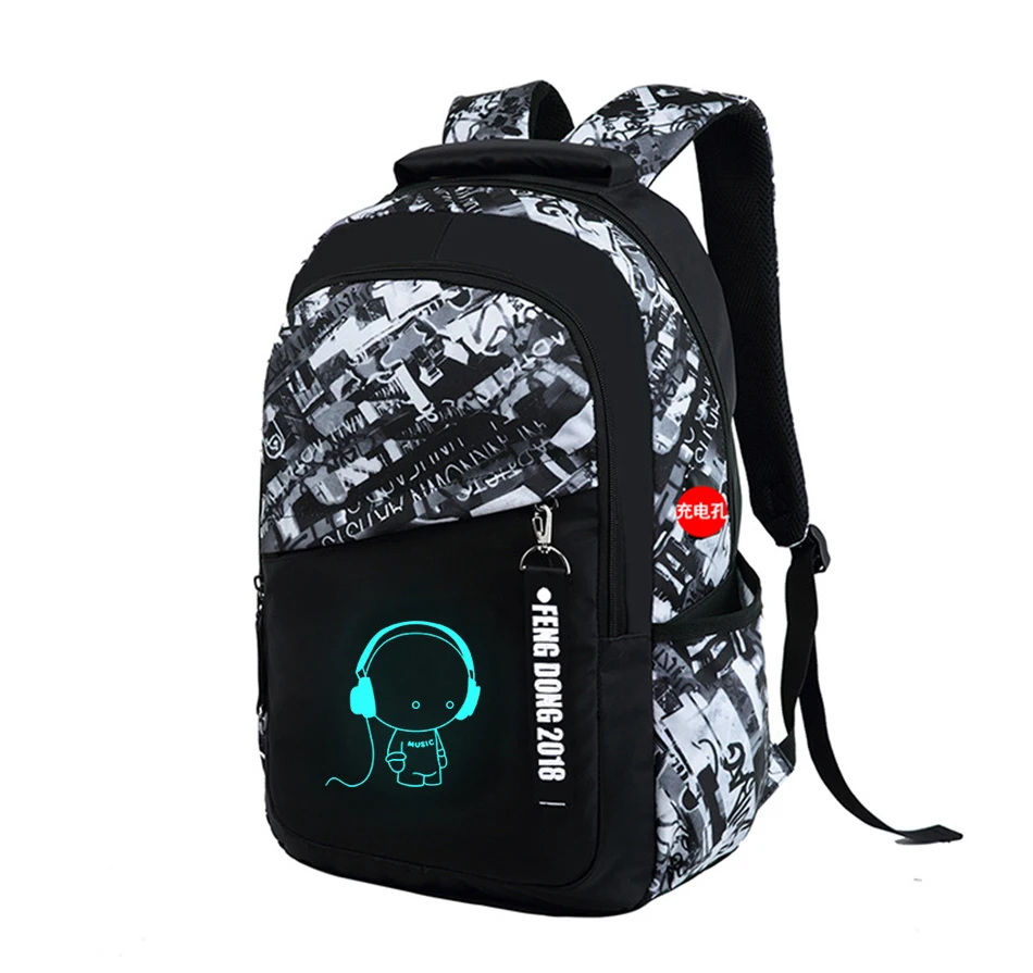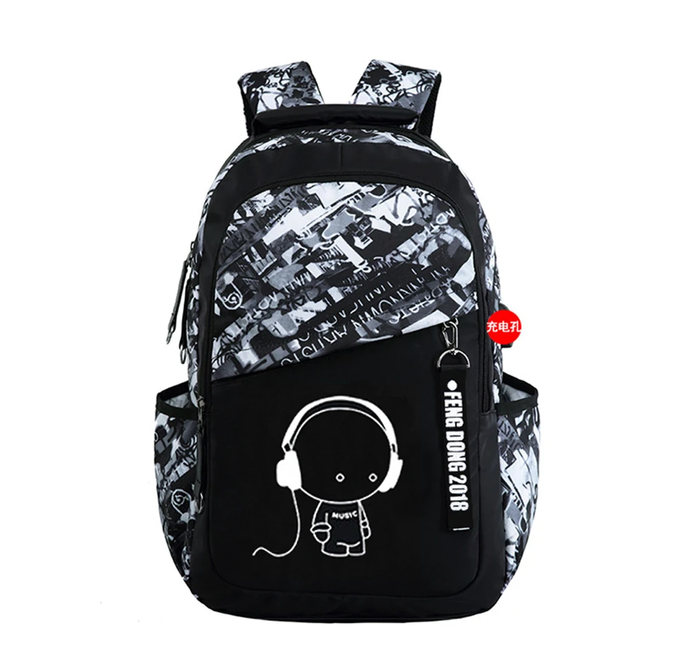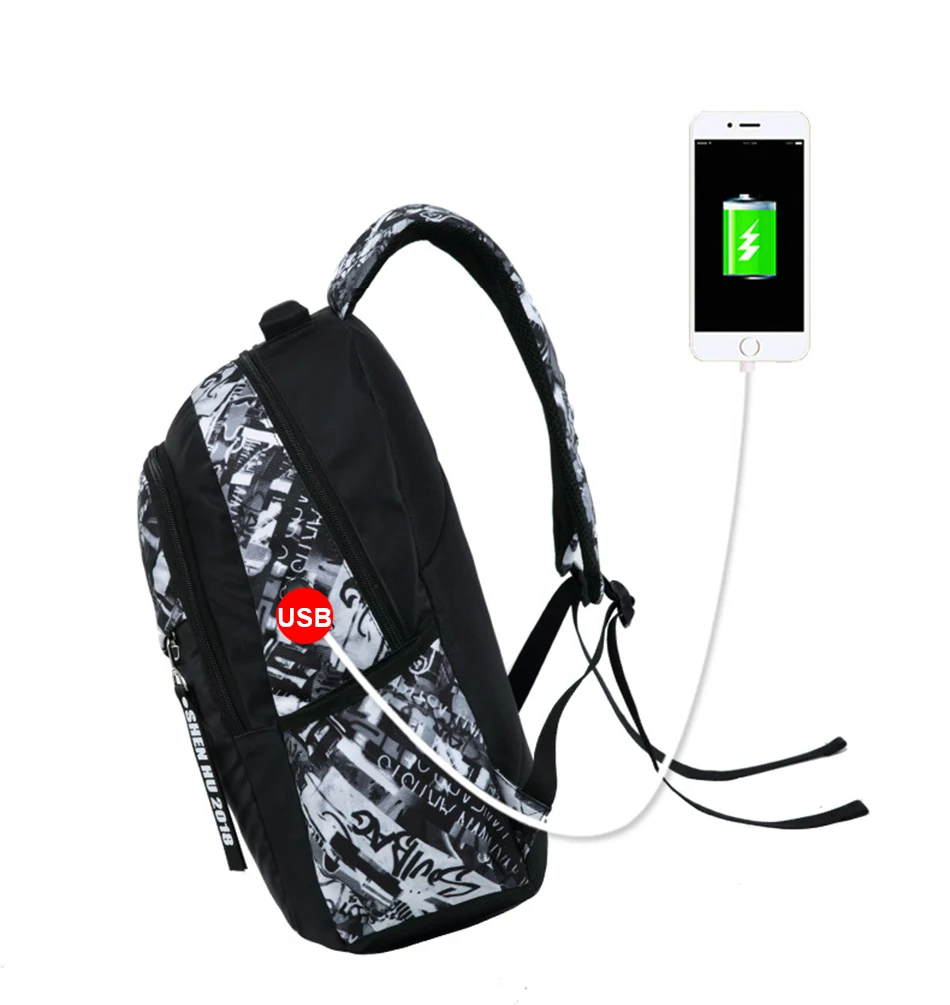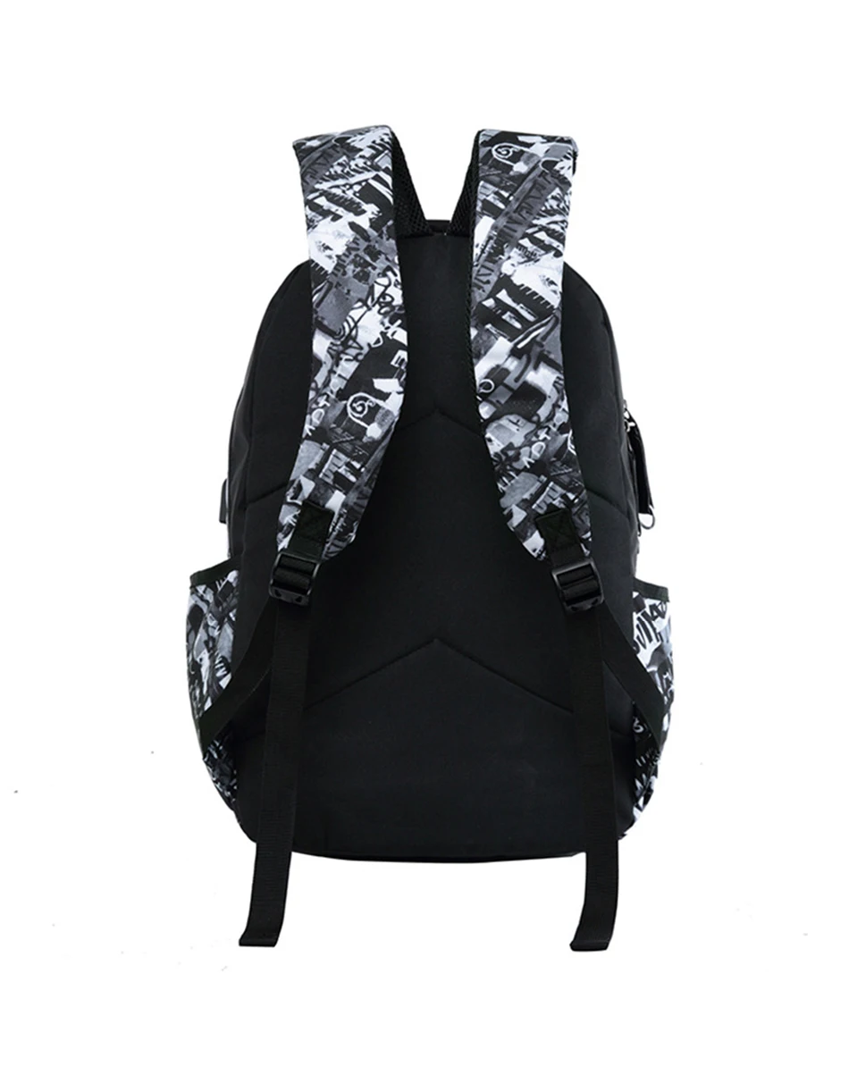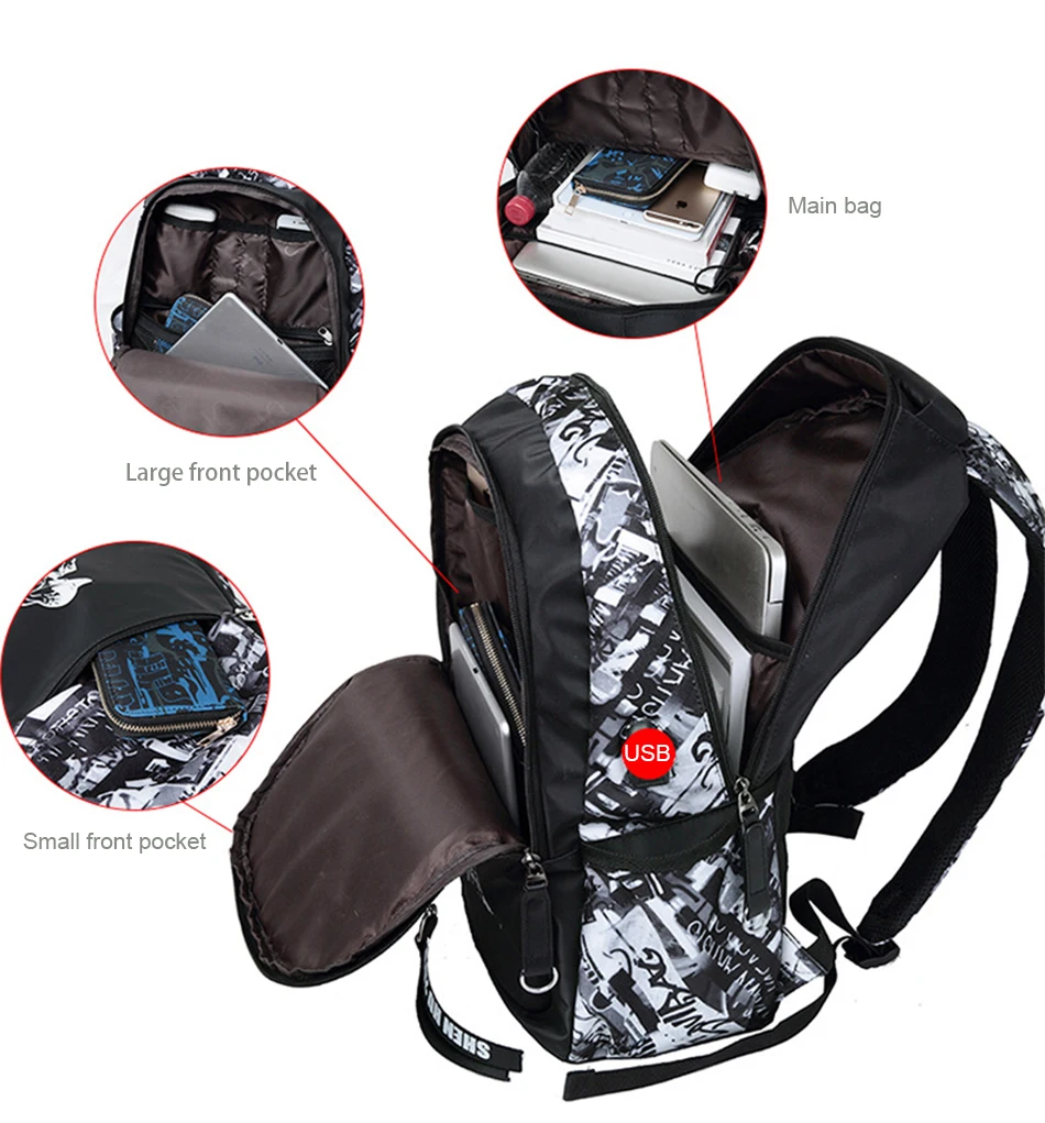 LUKATU Man USB School Bag Trend Student Laptop Backpack For Teenager Boys 2 Pcs/set Doodle Pattern Schoolbag Multifunction Bags