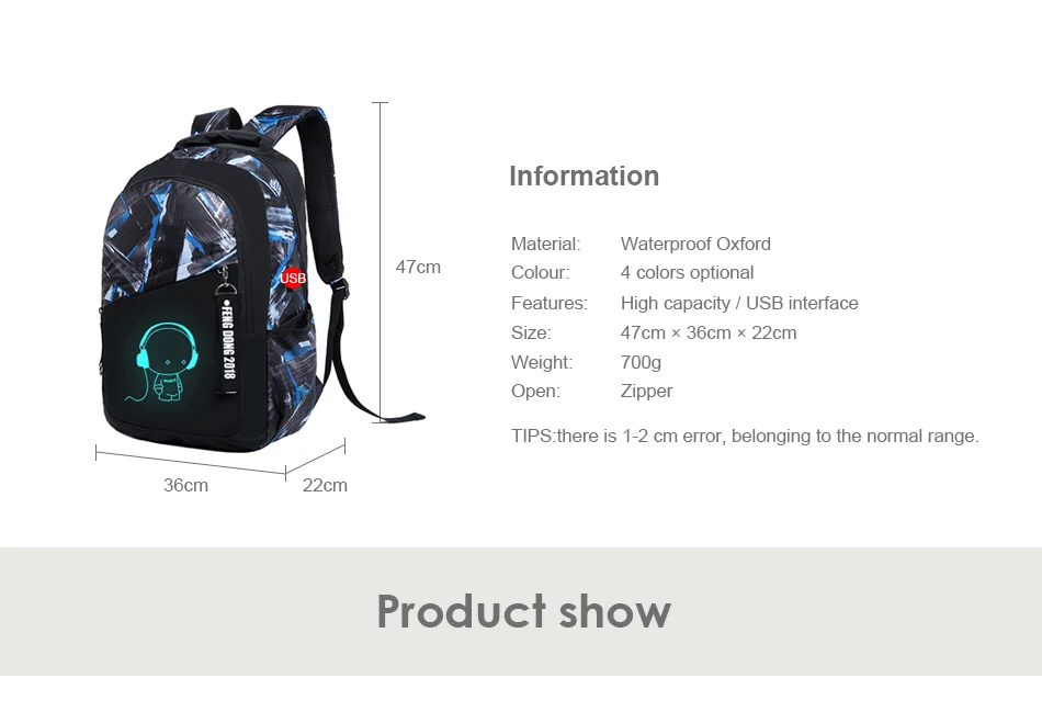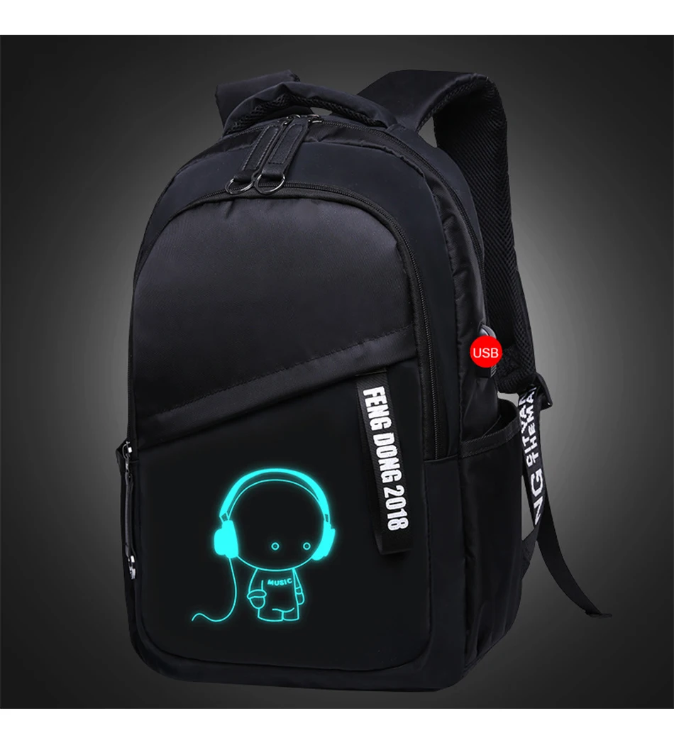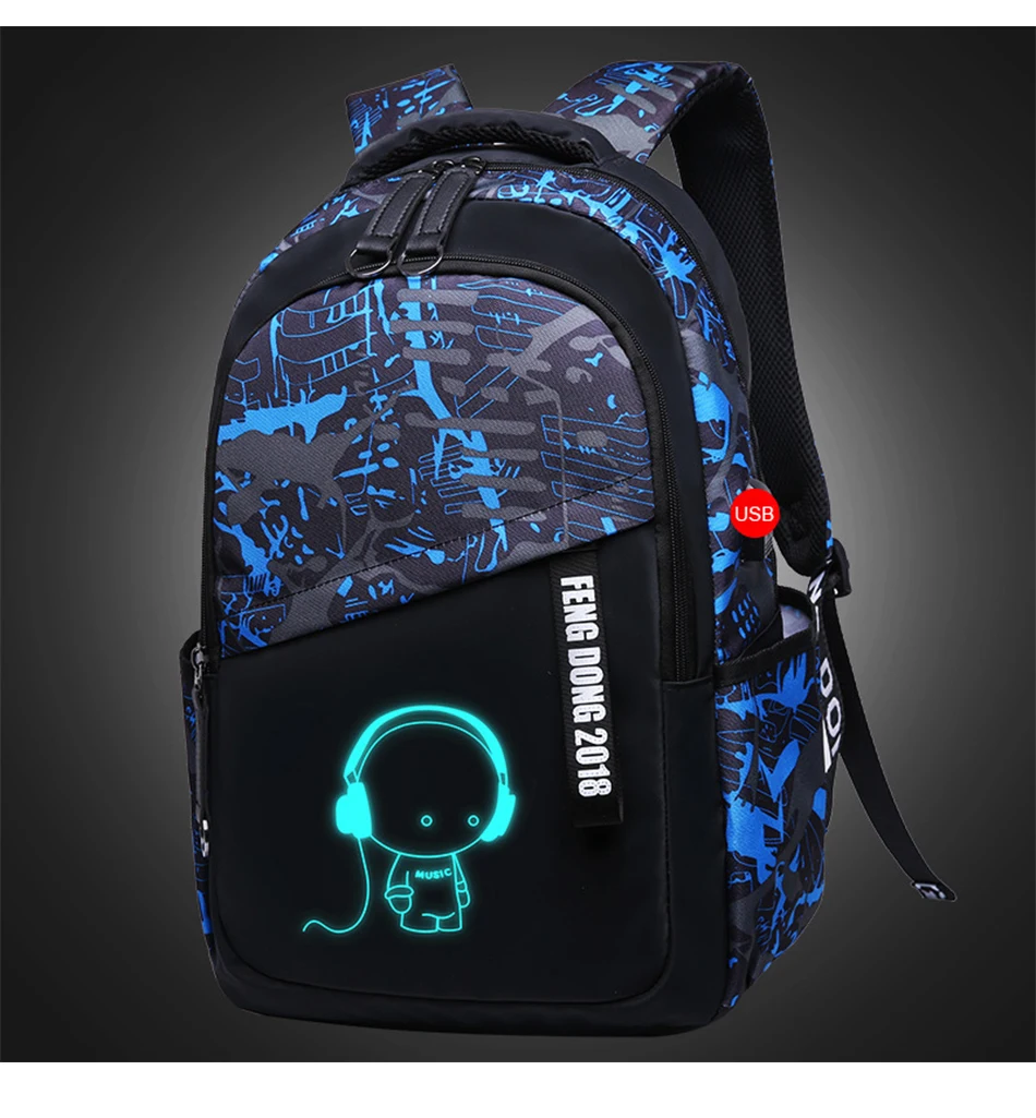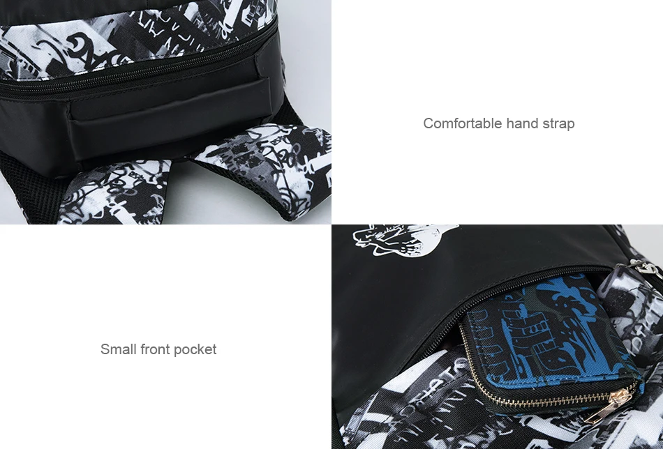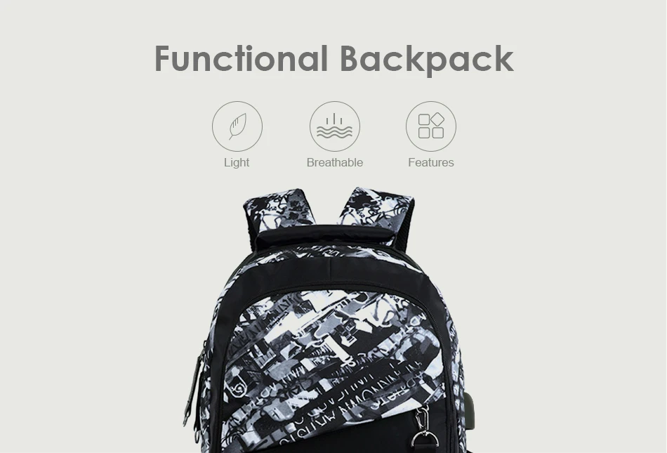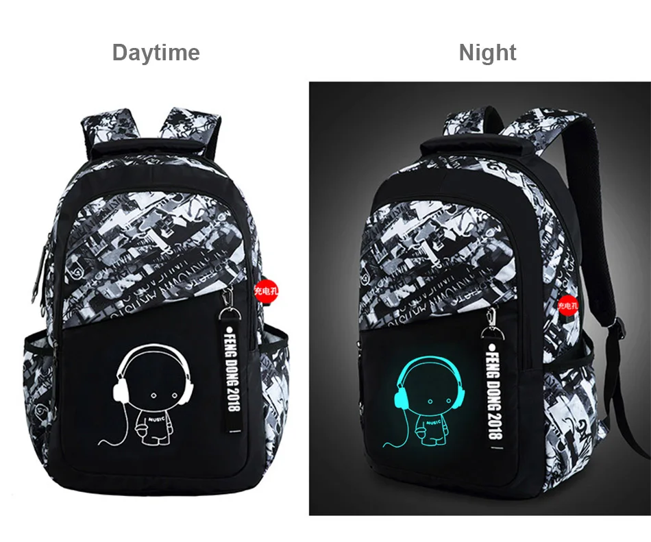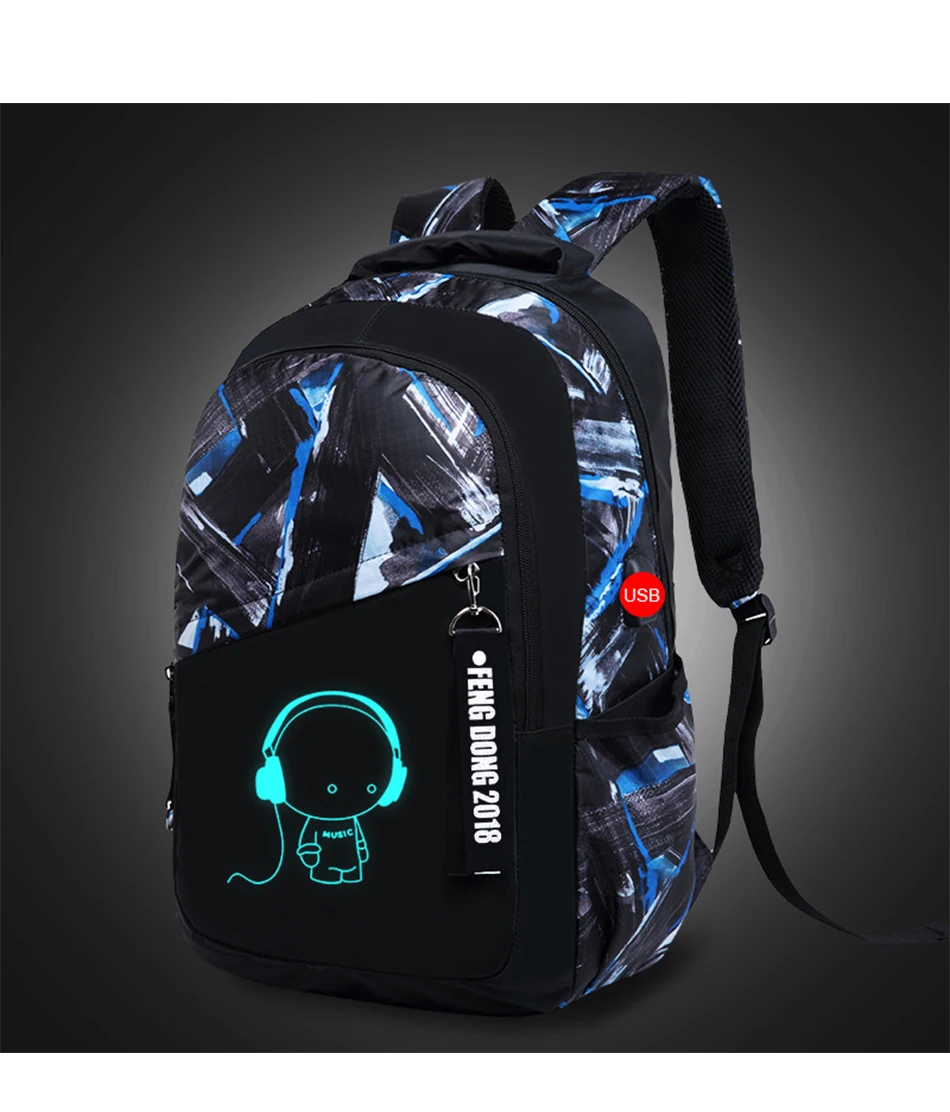 LUKATU Man USB School Bag Trend Student Laptop Backpack For Teenager Boys 2 Pcs/set Doodle Pattern Schoolbag Multifunction Bags