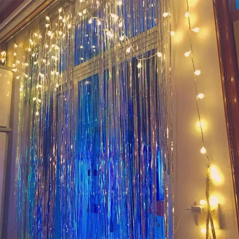 Shimmering Colourful Metallic Tinsel Curtain Foil Fringe Curtains for Party Photo Backdrop Wedding Decor Door Window Wall Decoration