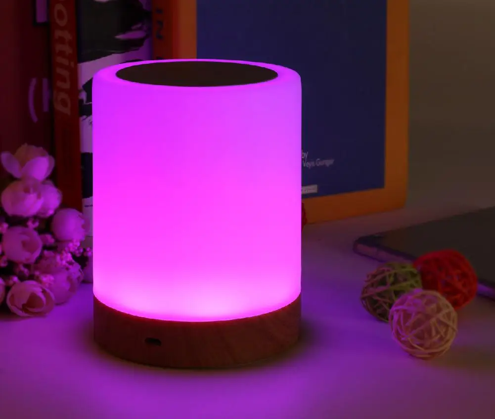 LumiParty USB Charging LED Dimmable Colorful Night Light Lamp Wood Grain Bed Light Home Office Decoration Gift