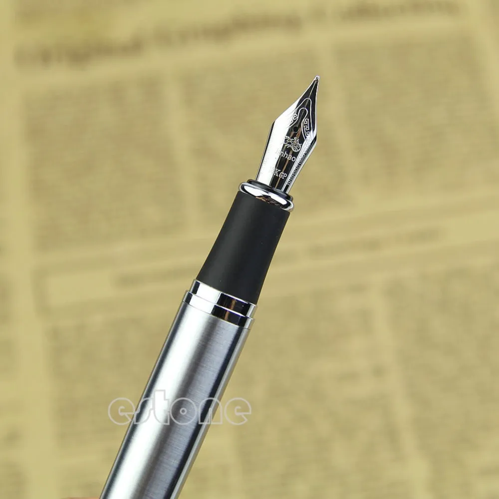 Luxury Brand Jinhao X750 Silver Stainless Steel Fountain Pen Medium 18KGP Nib School Office Name Ink Pens Gift Stationery