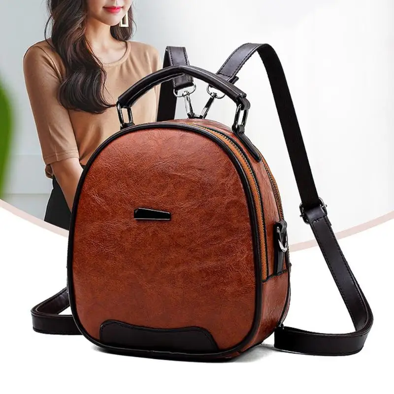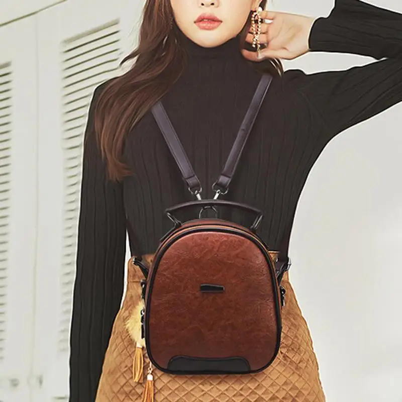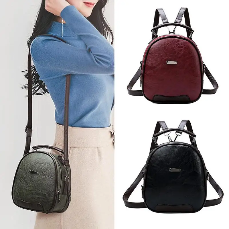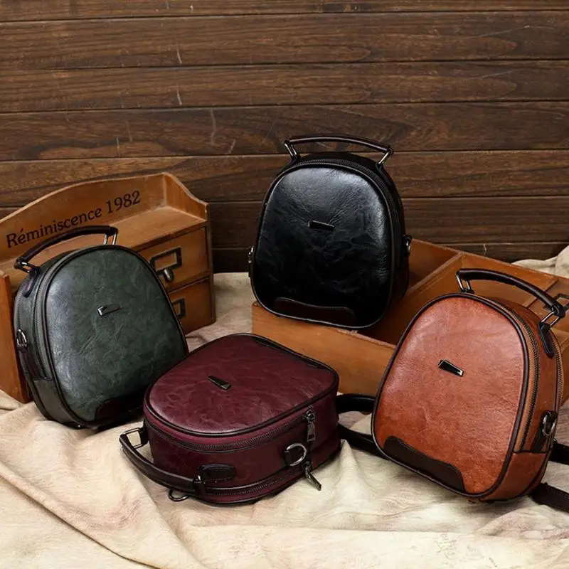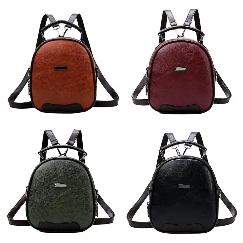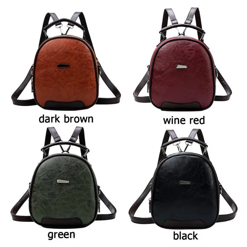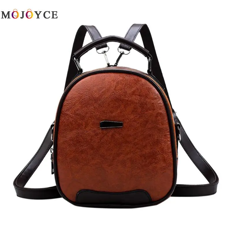 Retro Women Casual PU Leather Mini Backpacks Girls Zipper Shoulder School Bags Handbags
