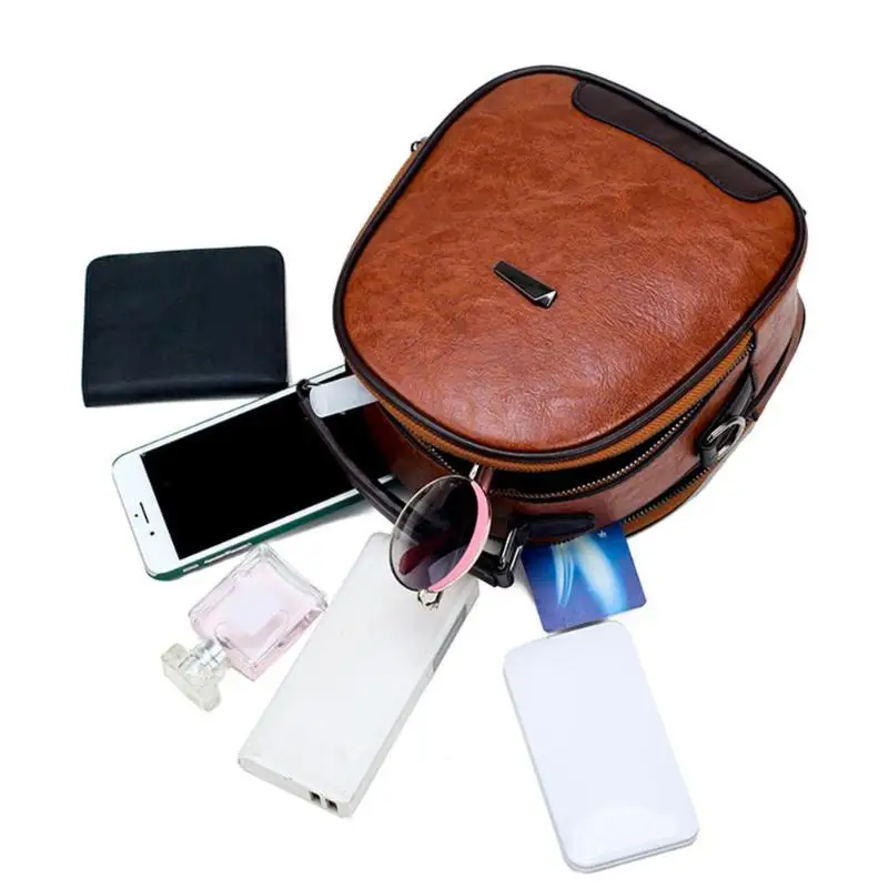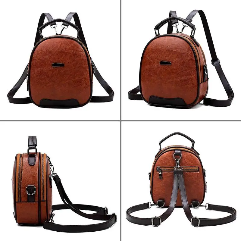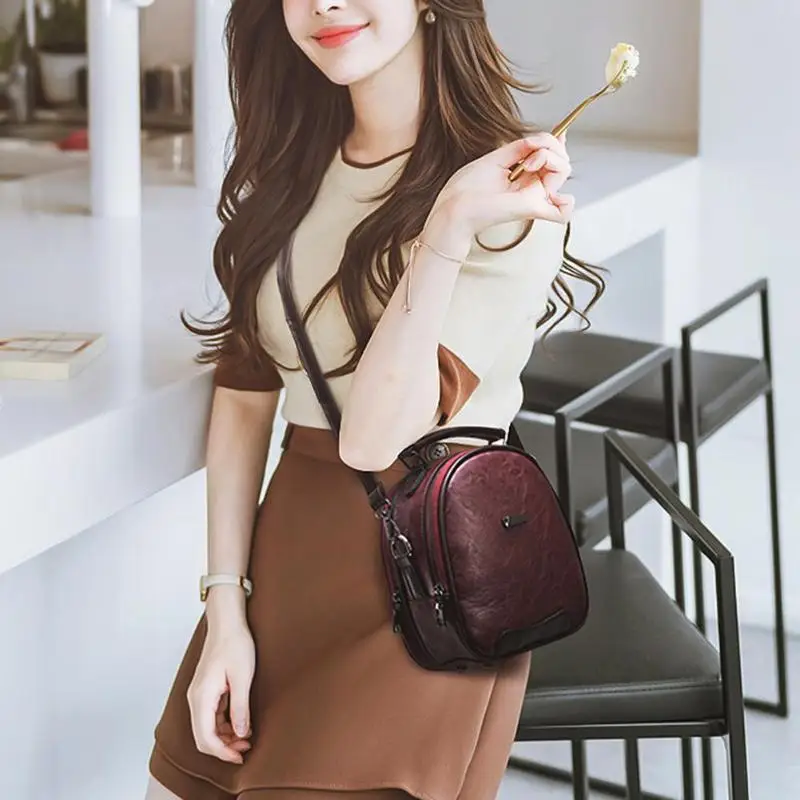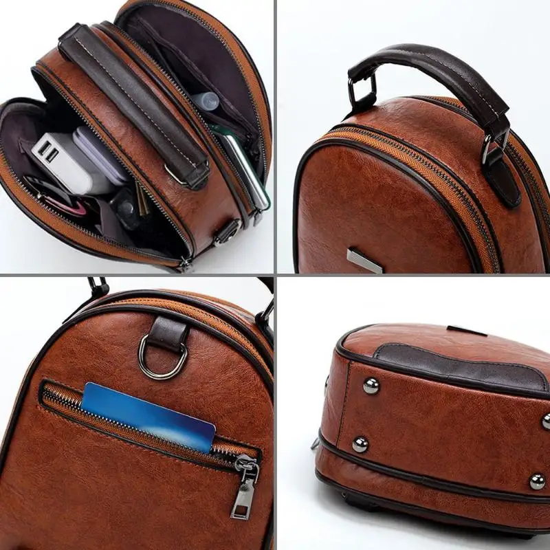 Luxury Brand Retro Women Casual PU Leather Mini Backpacks Girls Zipper Shoulder School Backpack Mochila Feminina