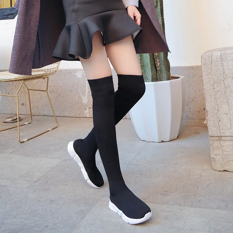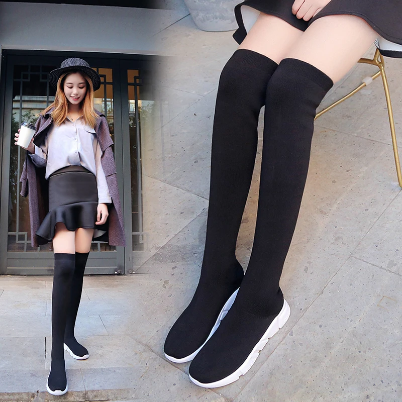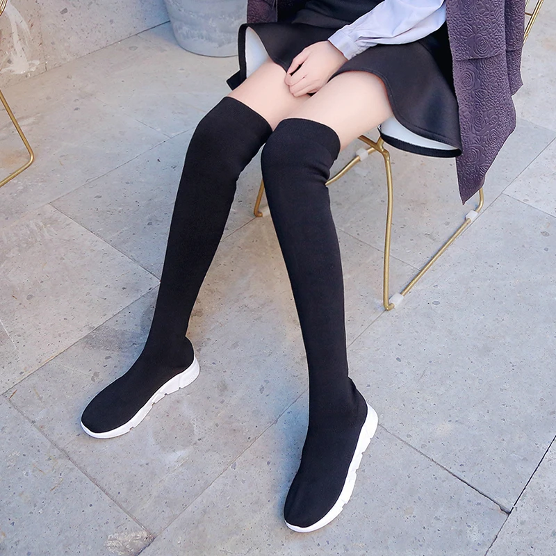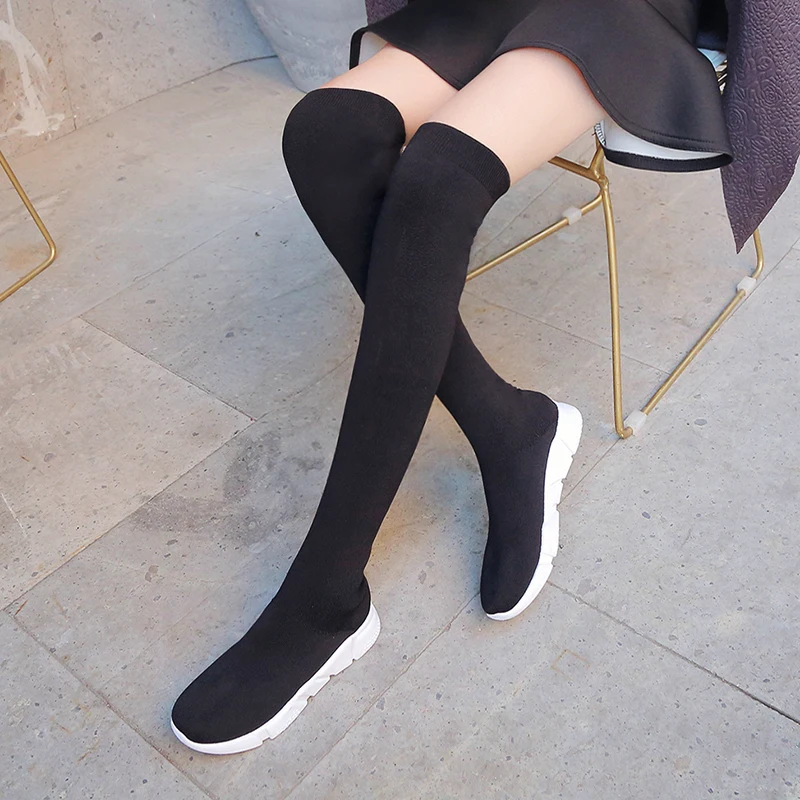 Luxury Brand Socks Boots Women Over The Knee High Boots Autumn Winter Knitted Shoes Long Thigh High Boots Elastic Slim Size35-41