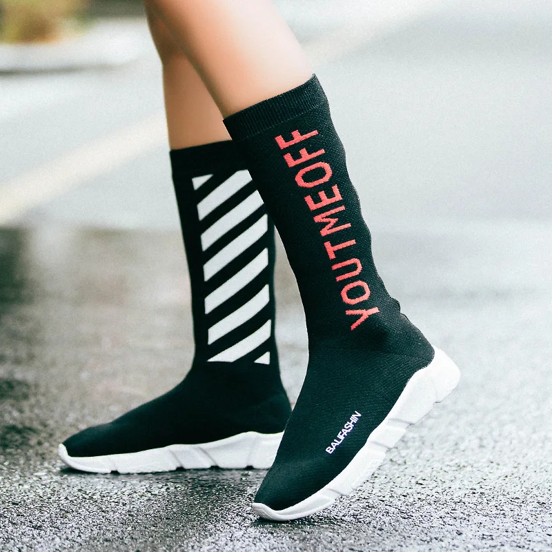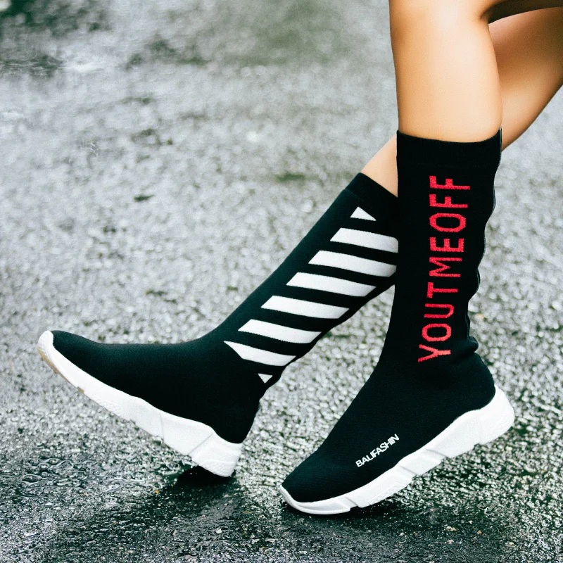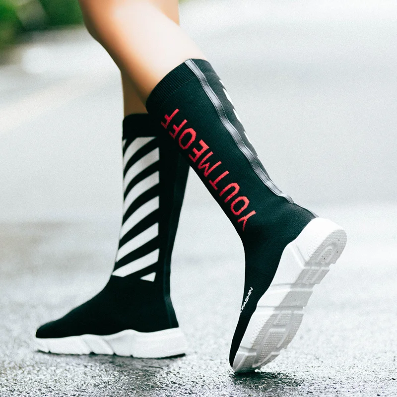 Luxury Brand Women Socks Boots designer shoes women luxury 2018 High Mid-Calf Boots Long Thigh High Boots Elastic Slim