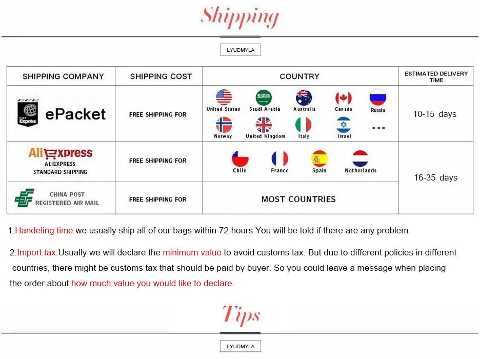 Packages from our warehouse in China will be shipped by ePacket or EMS depending on the weight and size of the product. Packages shipped from our US warehouse are shipped through USPS.
