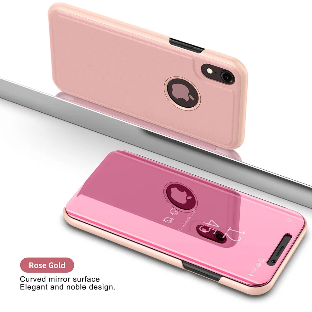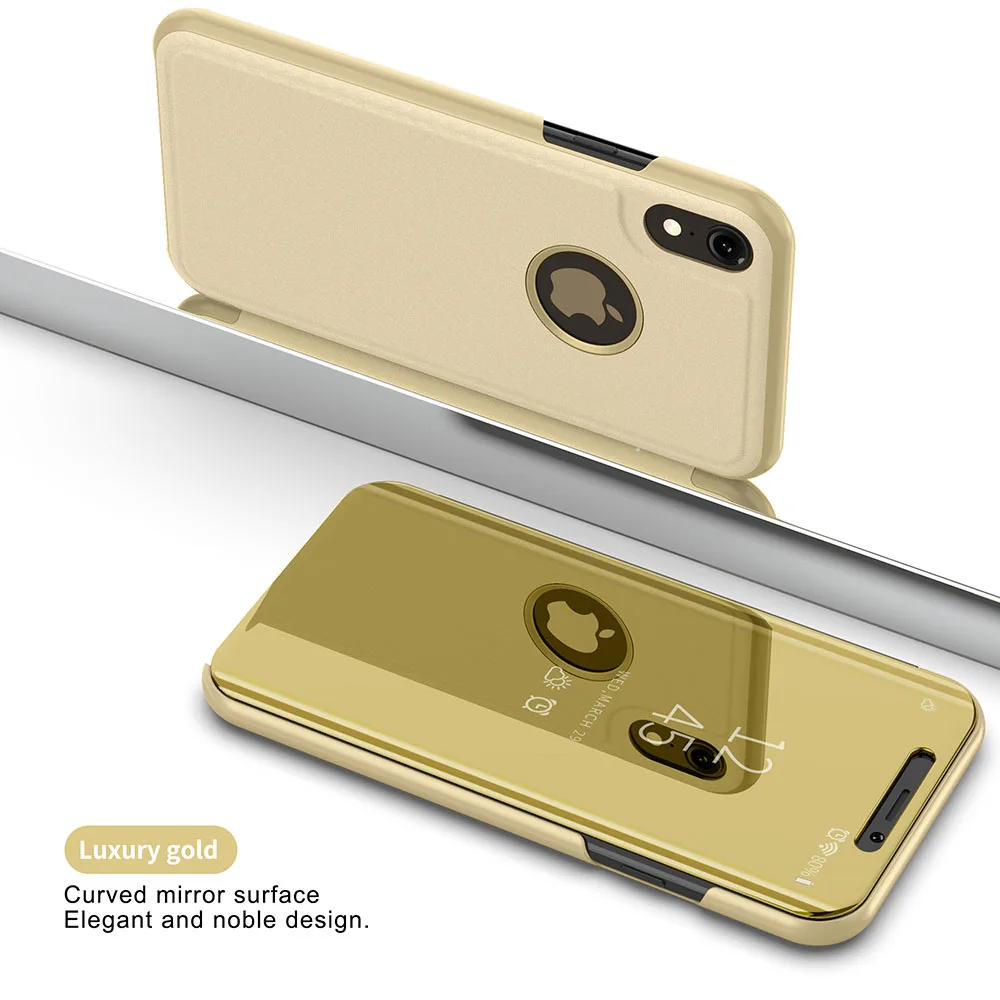 Luxury For iphone Xs Case Mirror Flip Protection For iphone XS MAX Case Plating Protection Kickstand Phone Cover For iphone XR