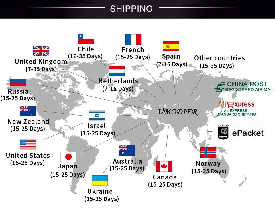 Packages from our warehouse in China will be shipped by ePacket or EMS depending on the weight and size of the product. Packages shipped from our US warehouse are shipped through USPS.