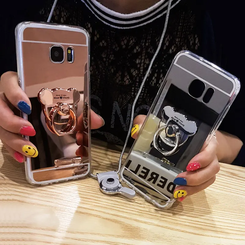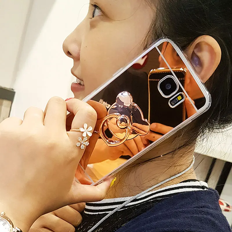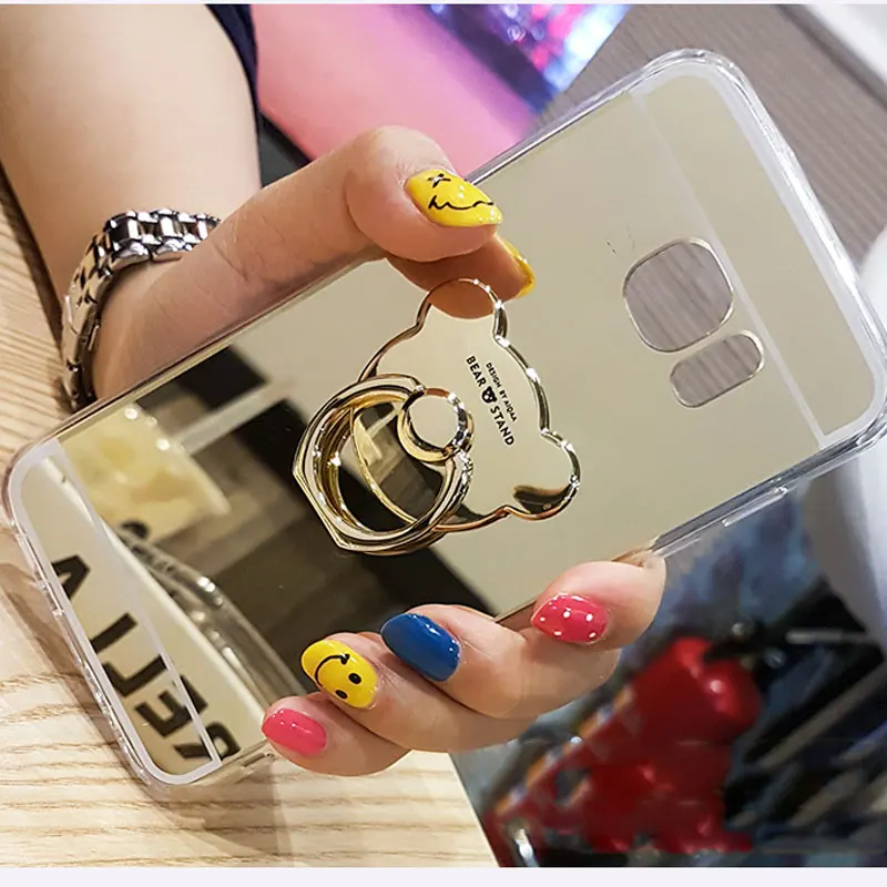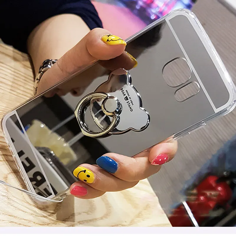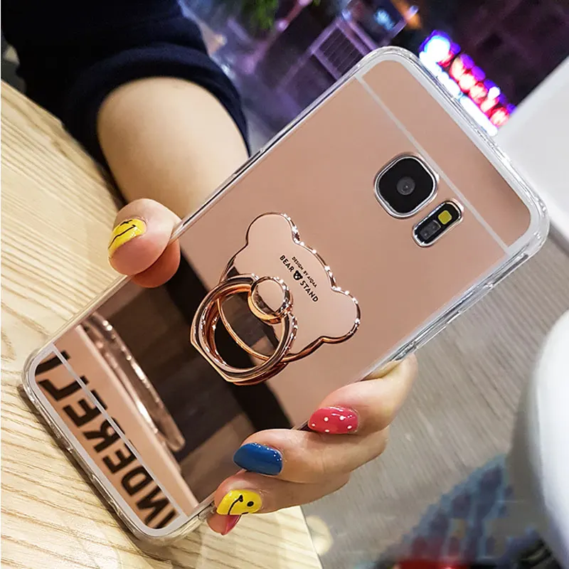 Luxury Mirror Stand Holder Plating TPU Case For Samsung Note 8 S9 S8 Plus S7 S6 Edge Plus S5 J3 J5 J7 A3 A5 A7 2016 2017 Cover