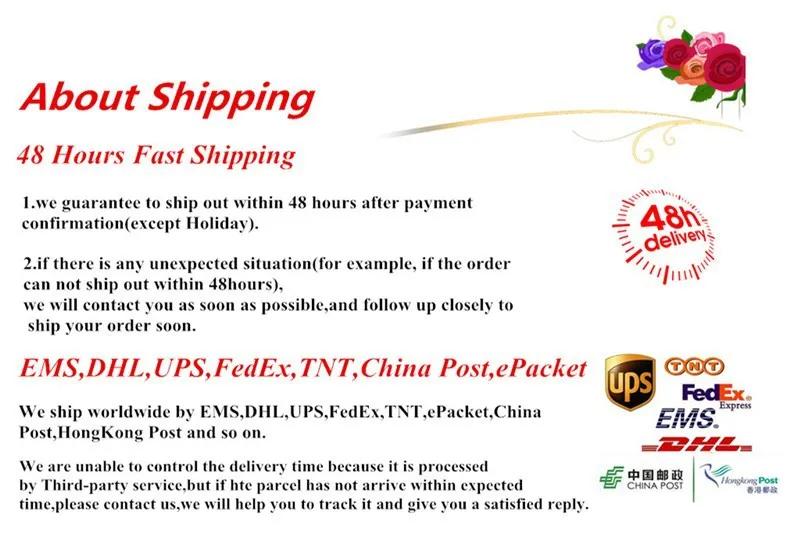 Packages from our warehouse in China will be shipped by ePacket or EMS depending on the weight and size of the product. Packages shipped from our US warehouse are shipped through USPS.