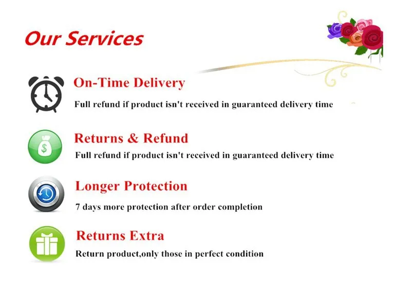 • If you did not receive the product within the guaranteed time( 45 days not including 2-5 day processing) you can request a refund or a reshipment.