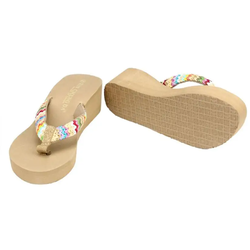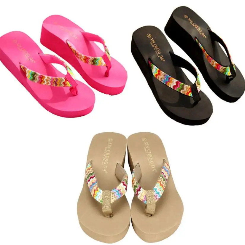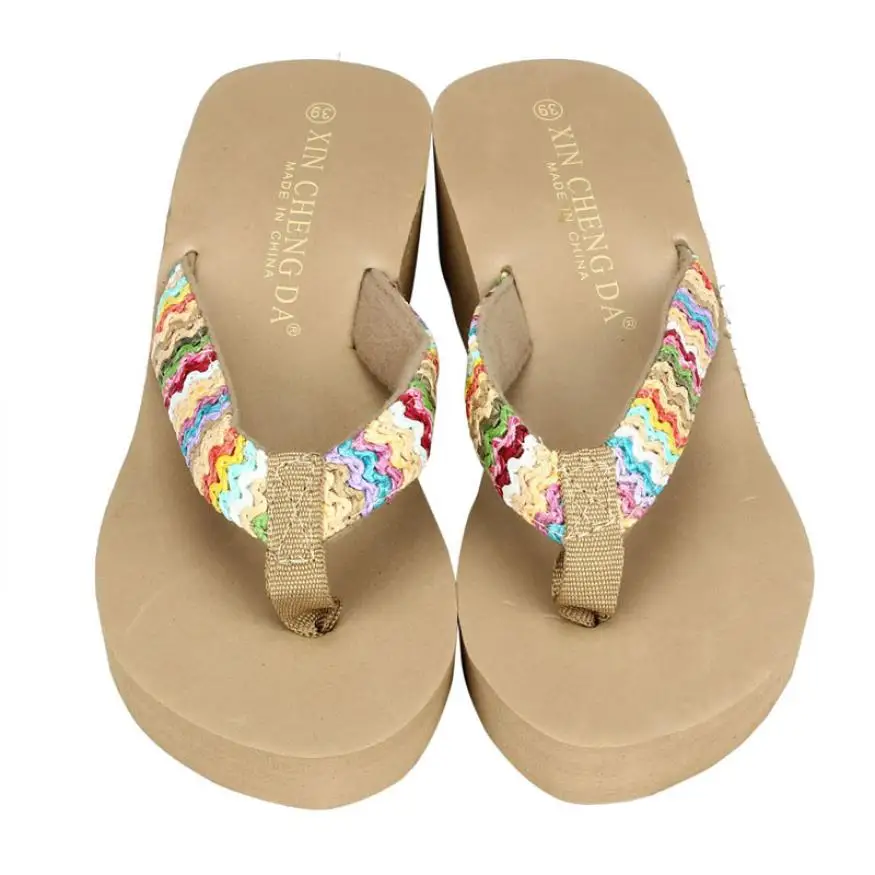 Summer Platform Sandals Beach Flat Wedge Patch Flip Flops Lady Slippers