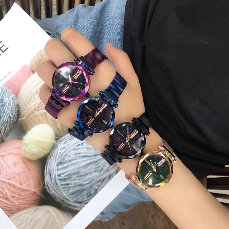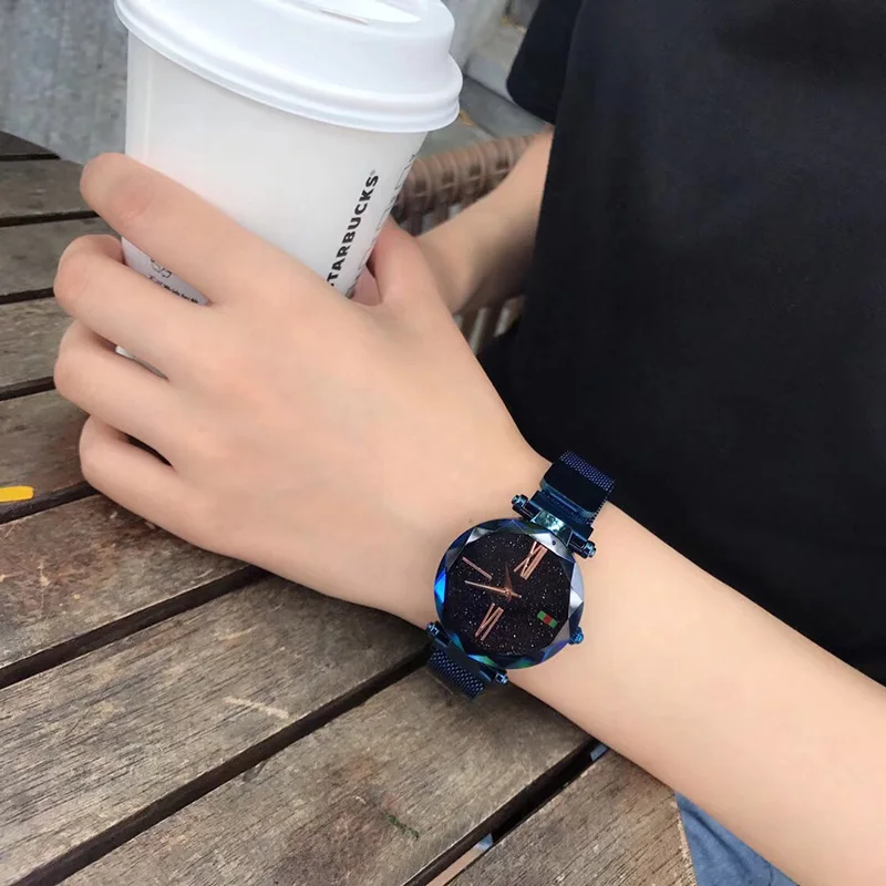 Luxury Women Star Watch Fashion Ladies Quartz Bracelet Wristwatches Steel Mesh Band Shining Dial Female Relogios Feminino Clock
