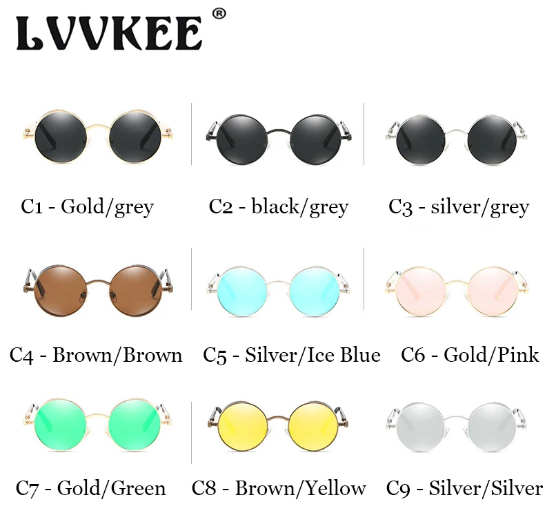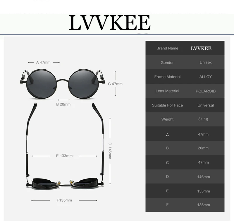 LVVKEE Round Metal Polarized Sunglasses Gothic Steampunk Men Women Fashion Glasses Brand Designer Retro Vintage Sunglasses UV400