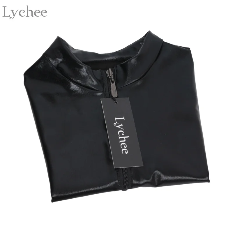 Lychee Sexy Summer Women Bodysuit Mesh Faxu Patchwork Zipper Slim Skinny Long Sleeve Playsuit Romper