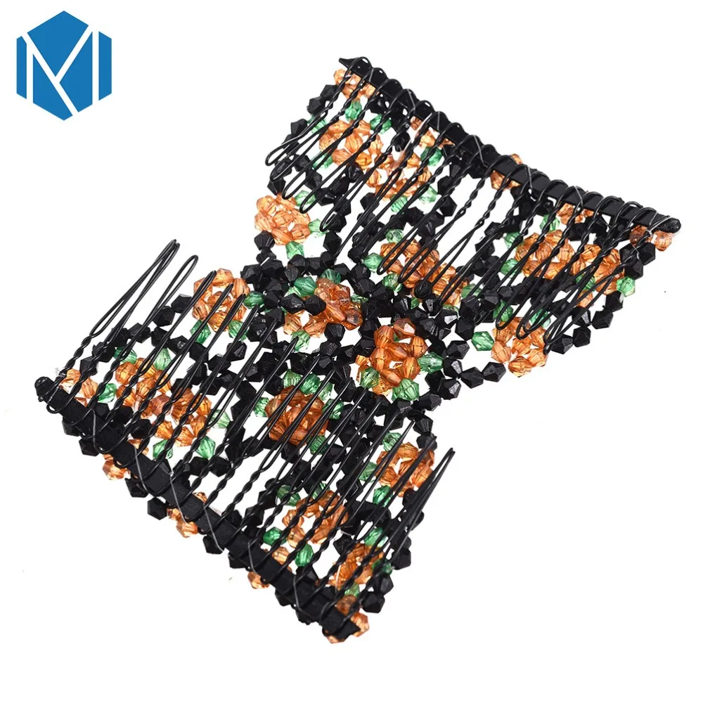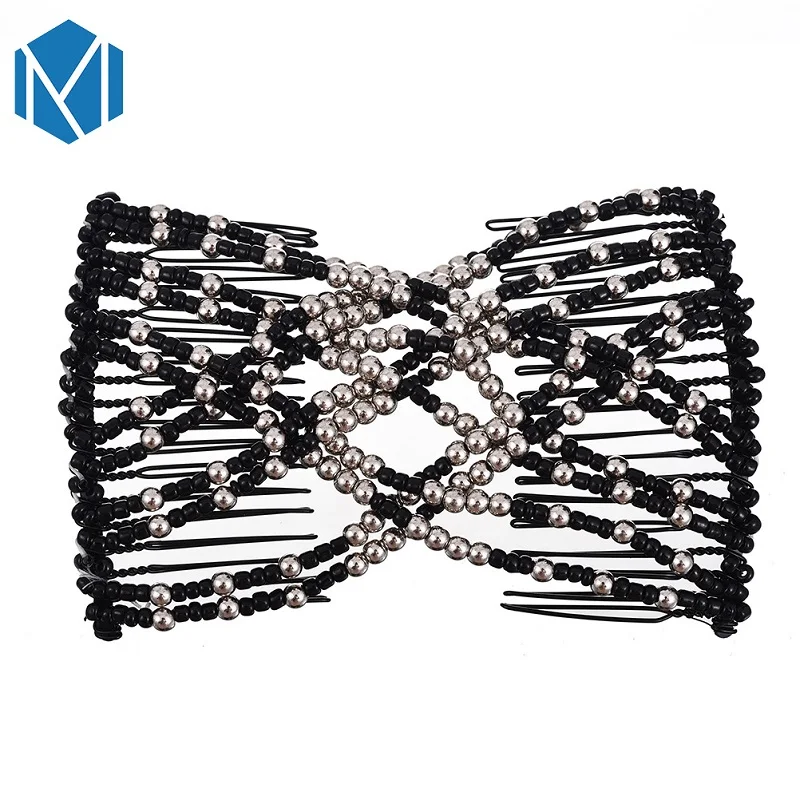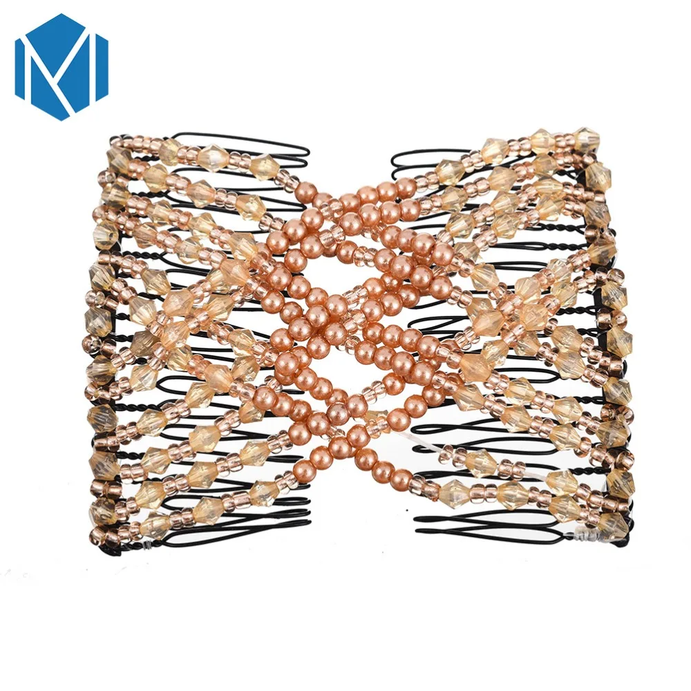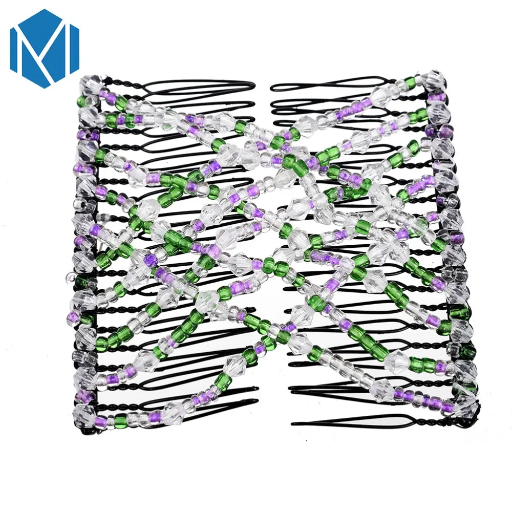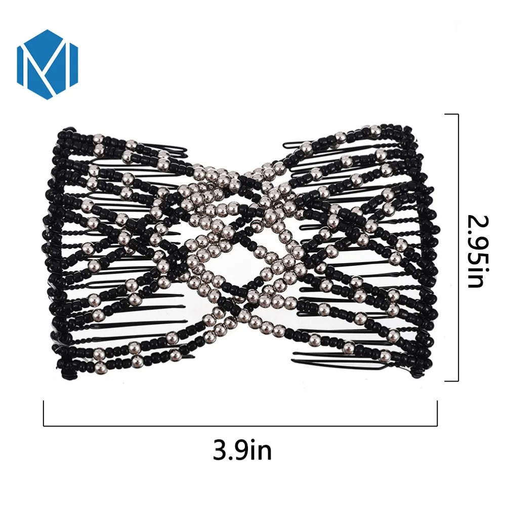 M MISM Mix Beads Hair Combs Double Magic Slide Metal Comb Hairpins Womens Hair Accessories Stretch DIY Hair Style Tool Jewelry