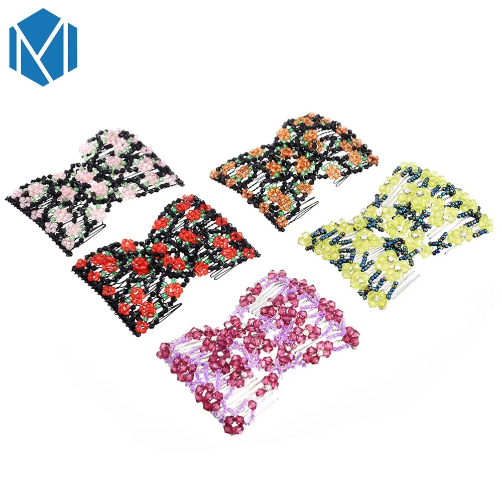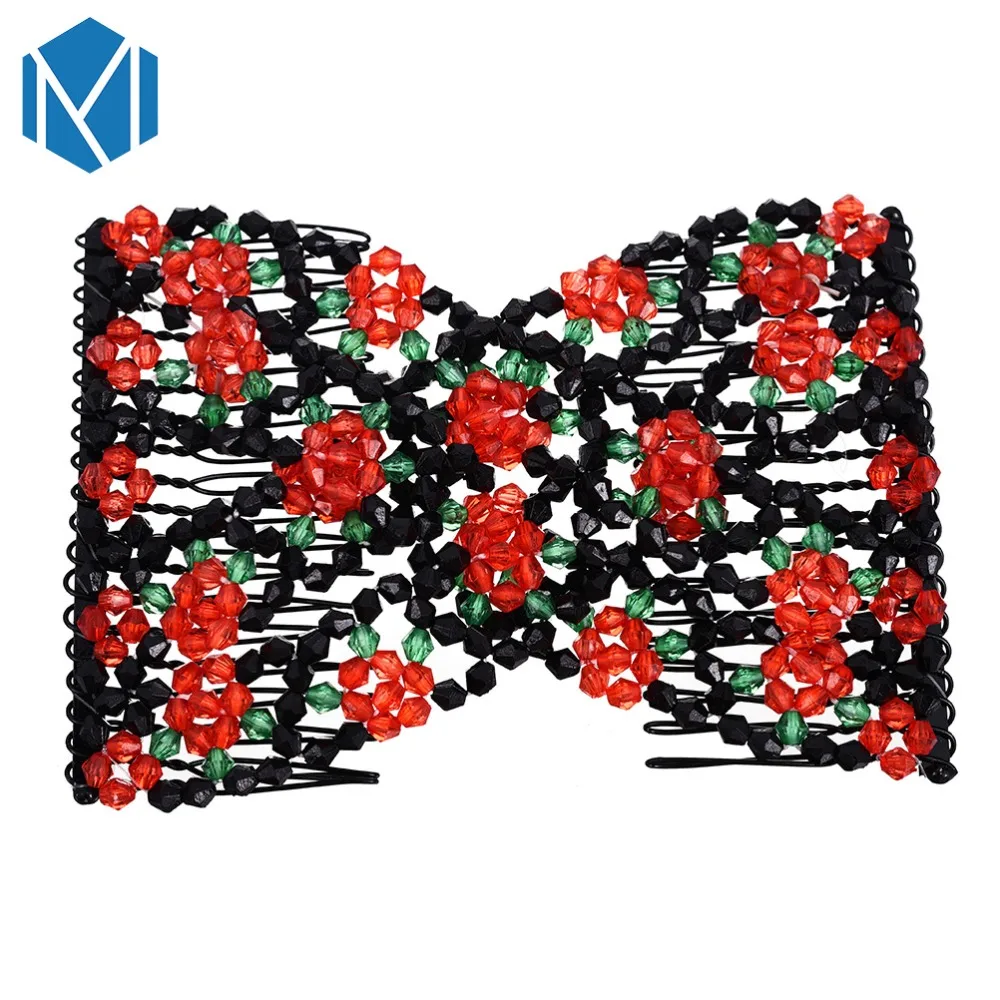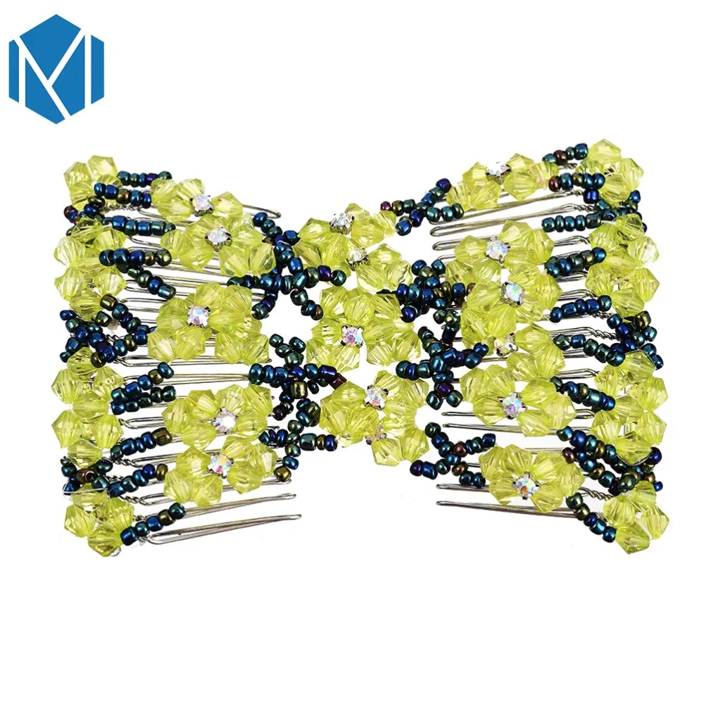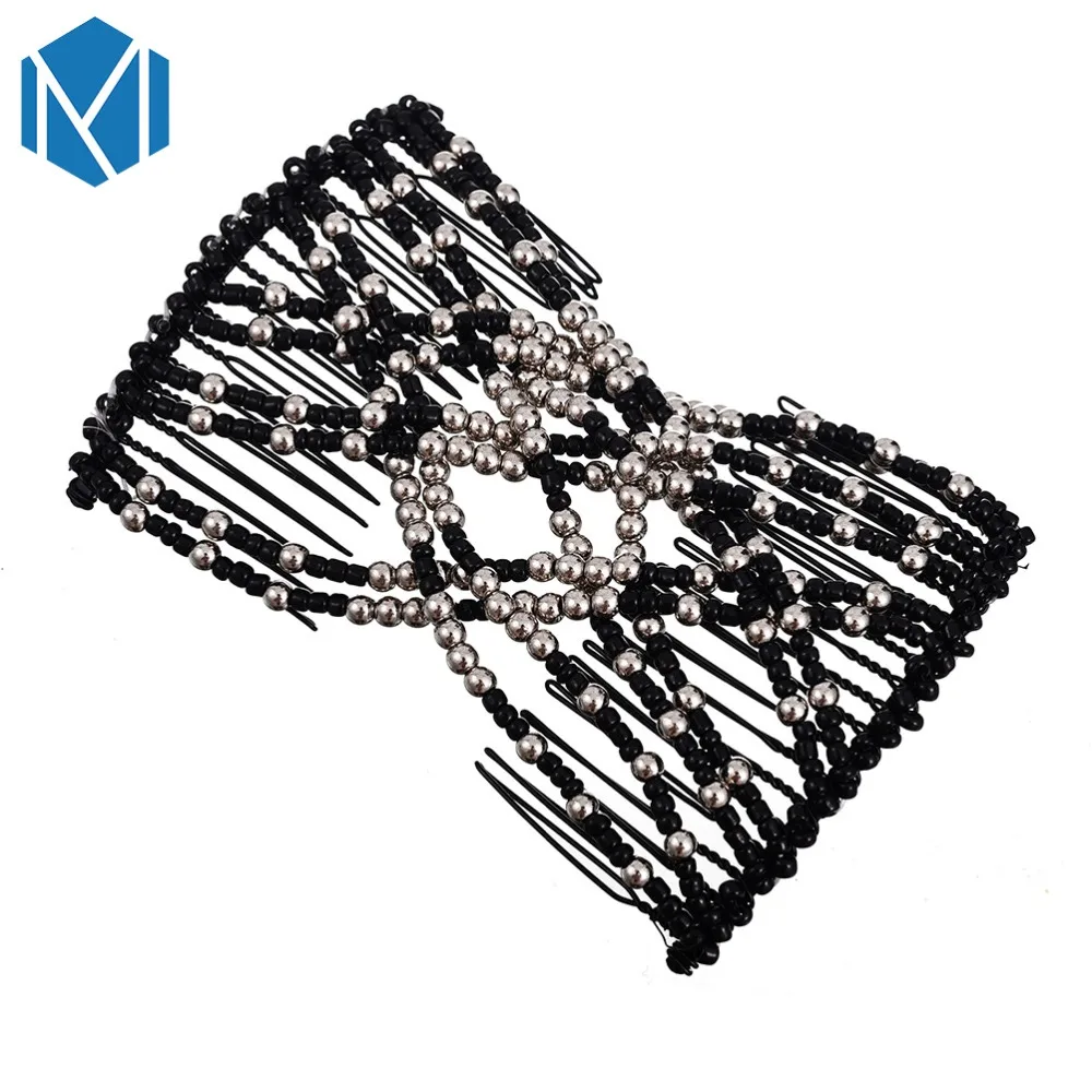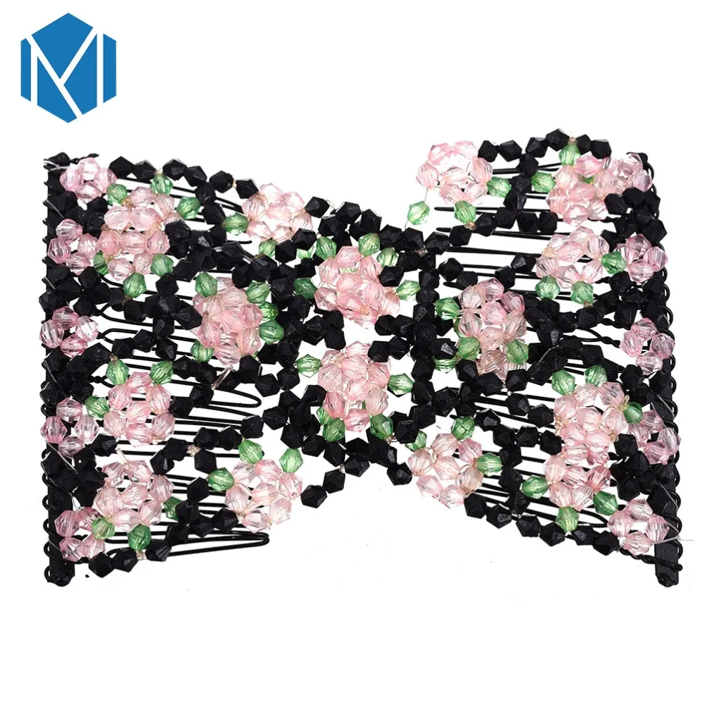 M MISM Mix Beads Hair Combs Double Magic Slide Metal Comb Hairpins Womens Hair Accessories Stretch DIY Hair Style Tool Jewelry