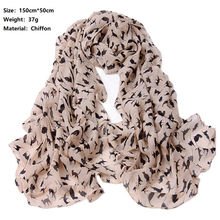 M MISM Women Trendy Retro 150*50 cm Autumn Classic Shawl Cat Patten Scrafs Exquisite Chiffon Woman Elegant Scarf Hijabs Stoles
