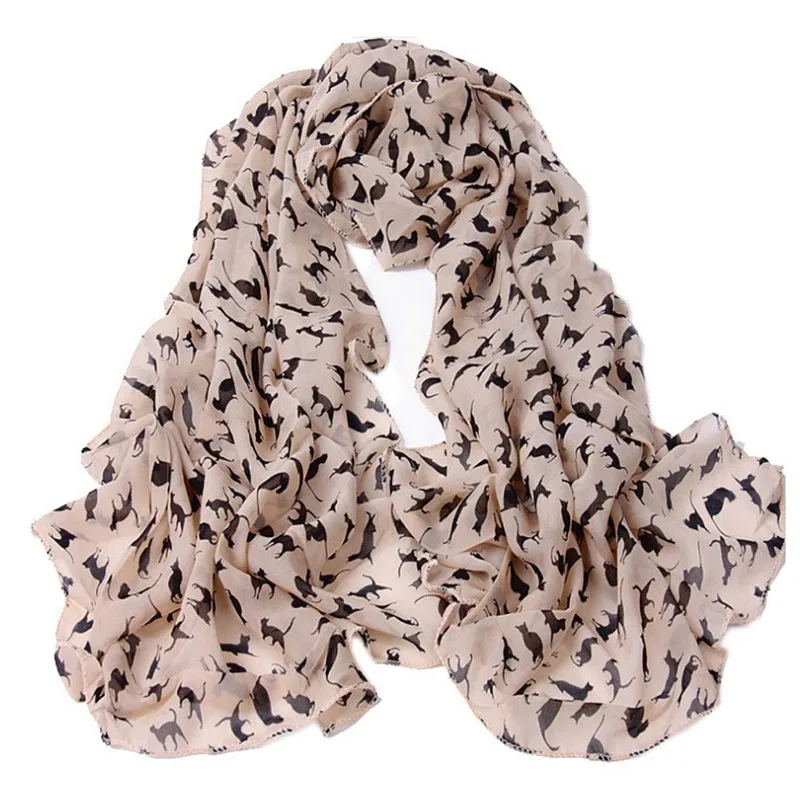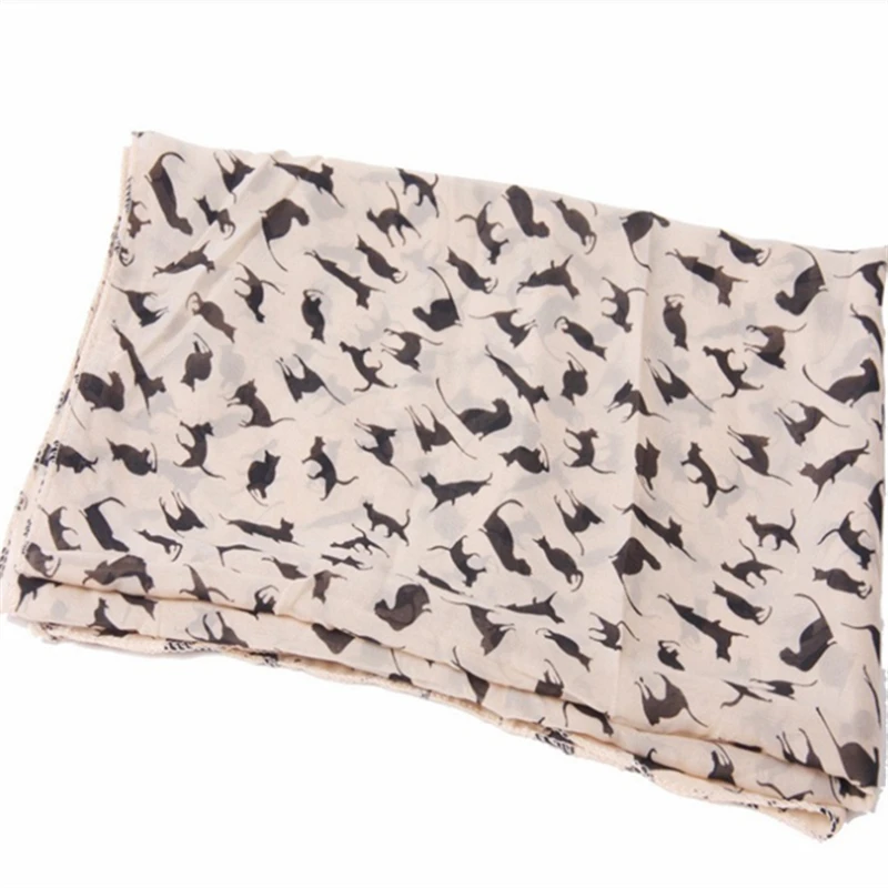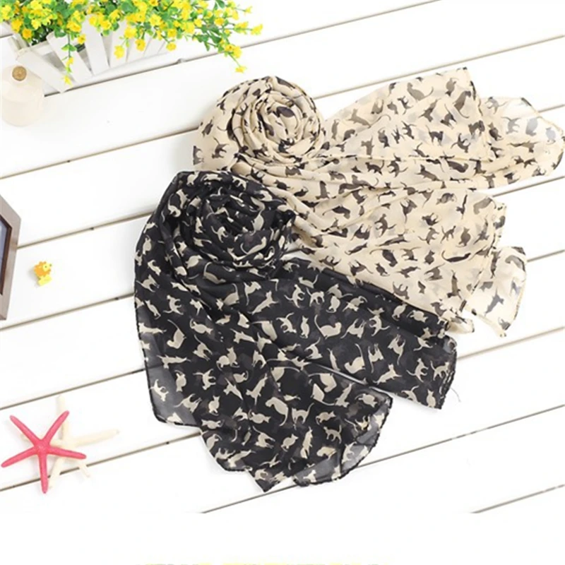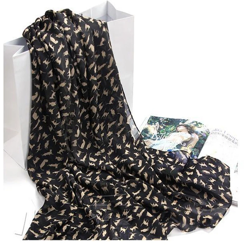 M MISM Women Trendy Retro 150*50 cm Autumn Classic Shawl Cat Patten Scrafs Exquisite Chiffon Woman Elegant Scarf Hijabs Stoles