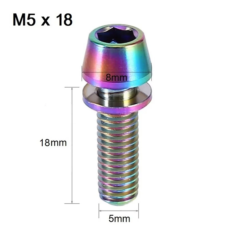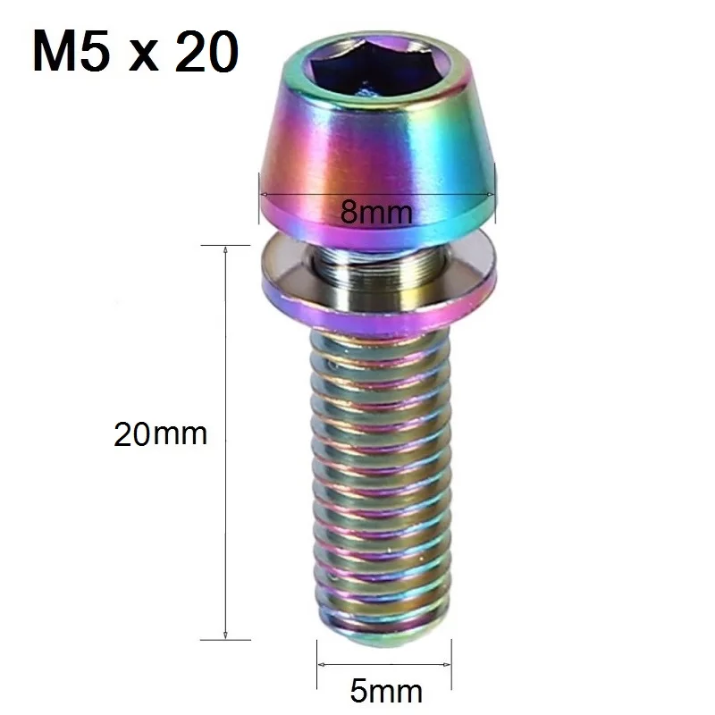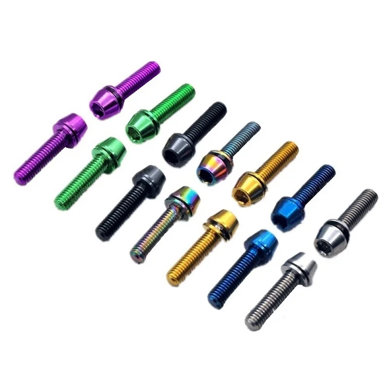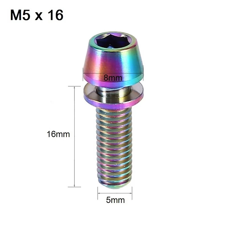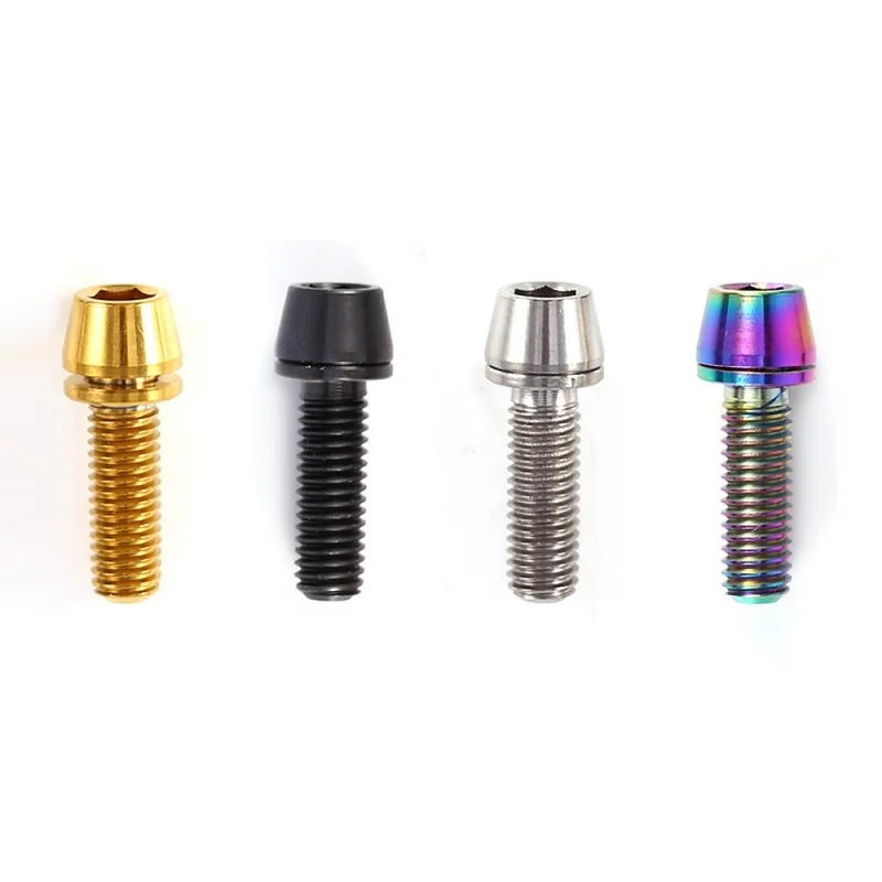 M5x16/18/20mm Bicycle Titanium Head Bolt Titanium Alloy Tapered Head Screw for Mountain Bike Brake Stem Fixed Lock with Washer