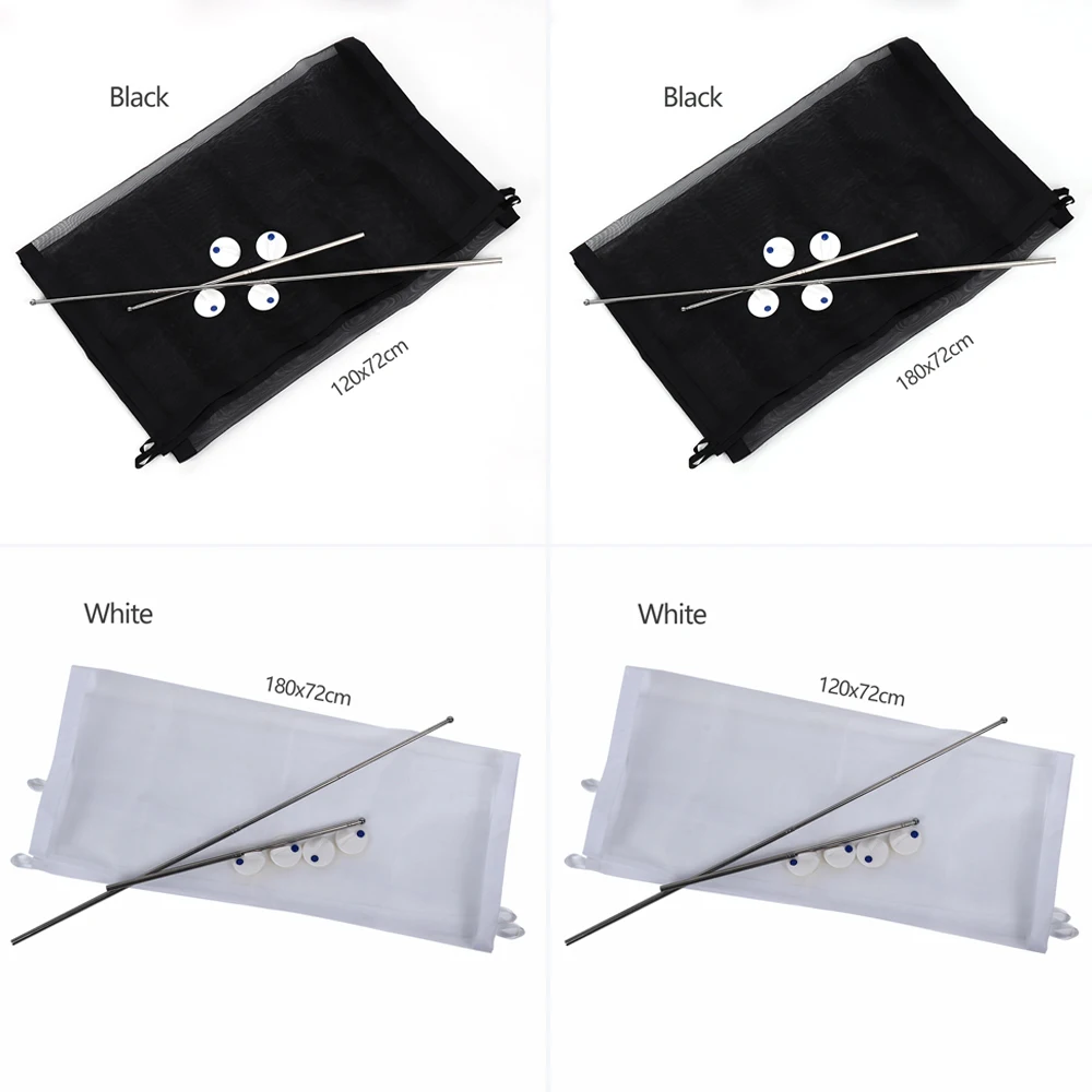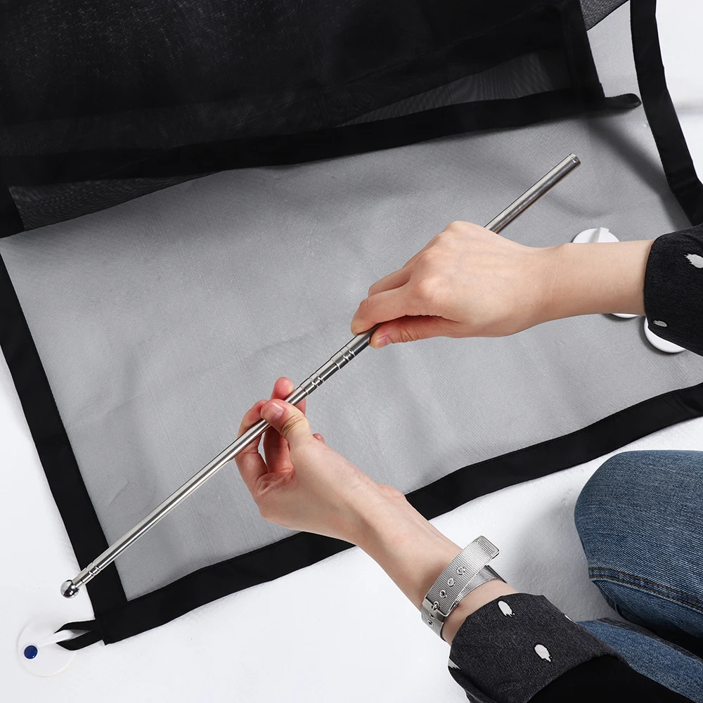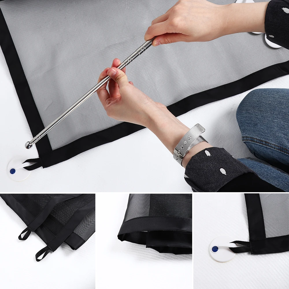 • 7.Each Set Includes one fabric woven, two stretchable poles (Two styles are shipped at random) and four sticky hooks