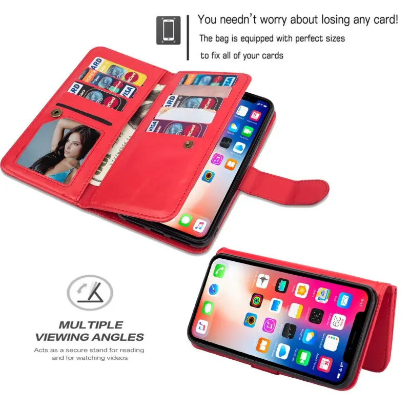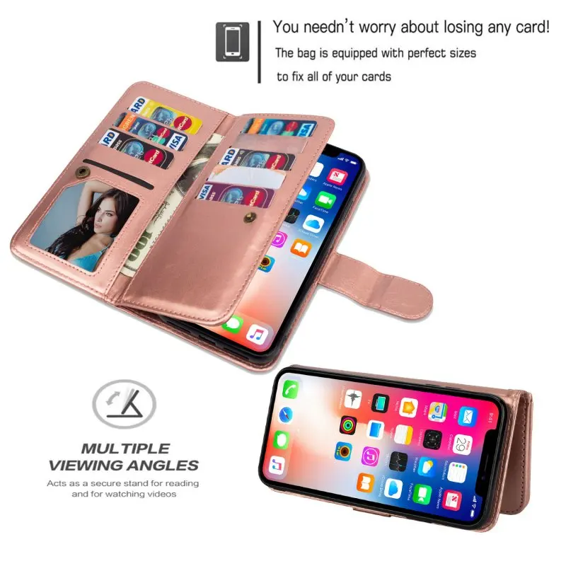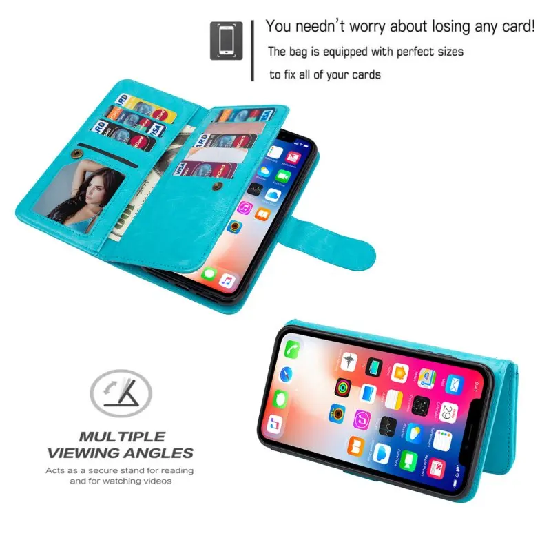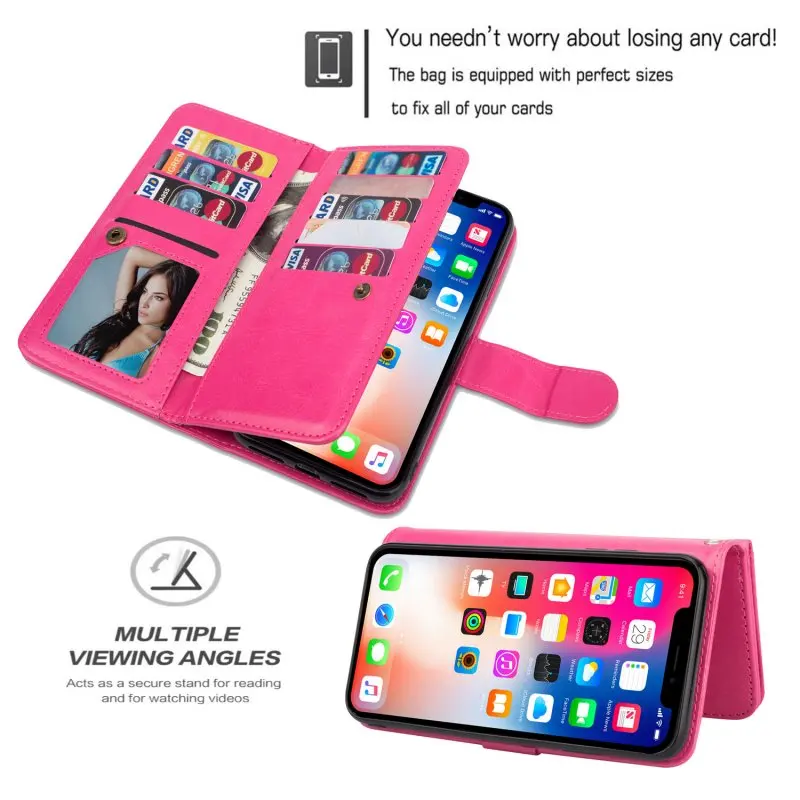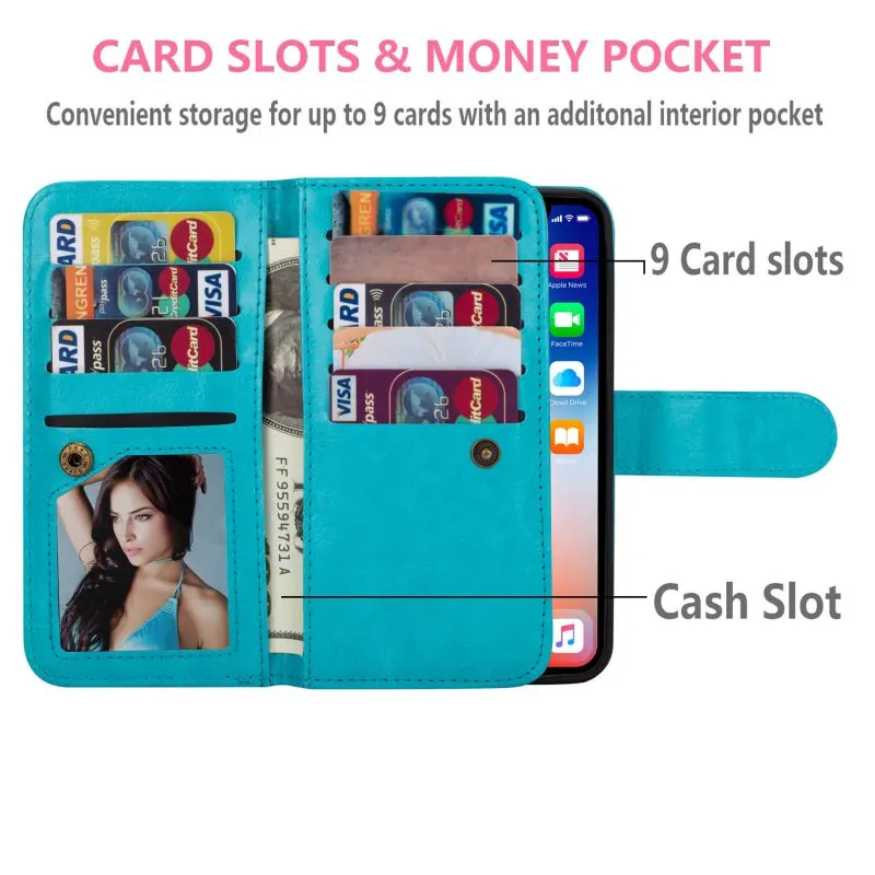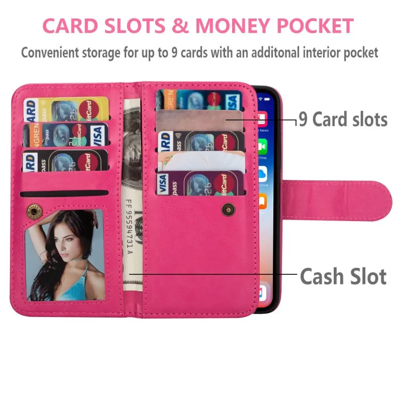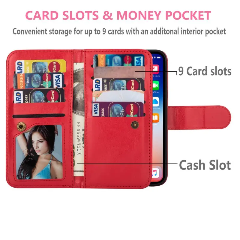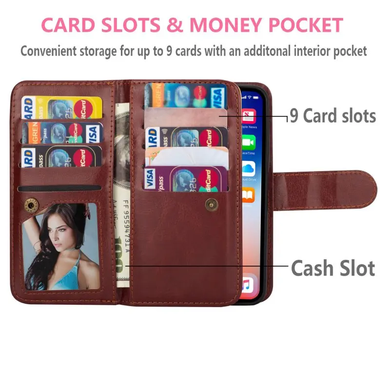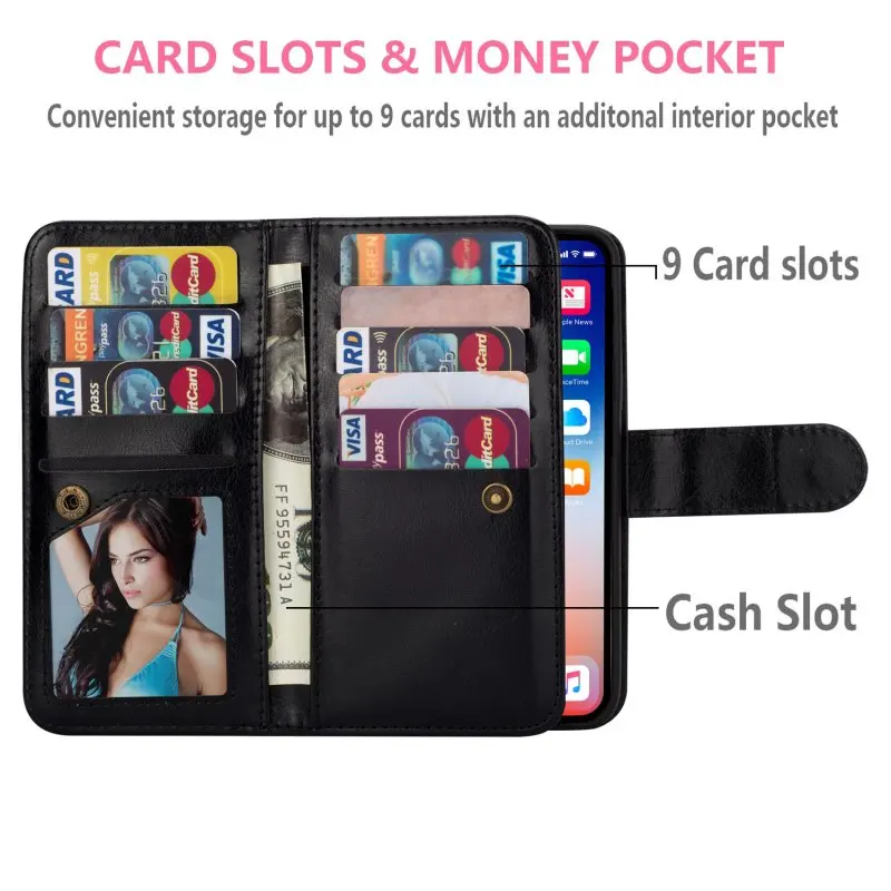 [Feature]: Magnetic Detachable Wallet Case With 9 Card Slots & Strap,Leather Case,Flip Cover