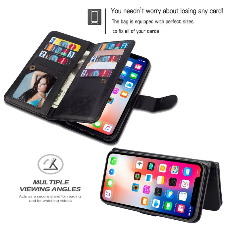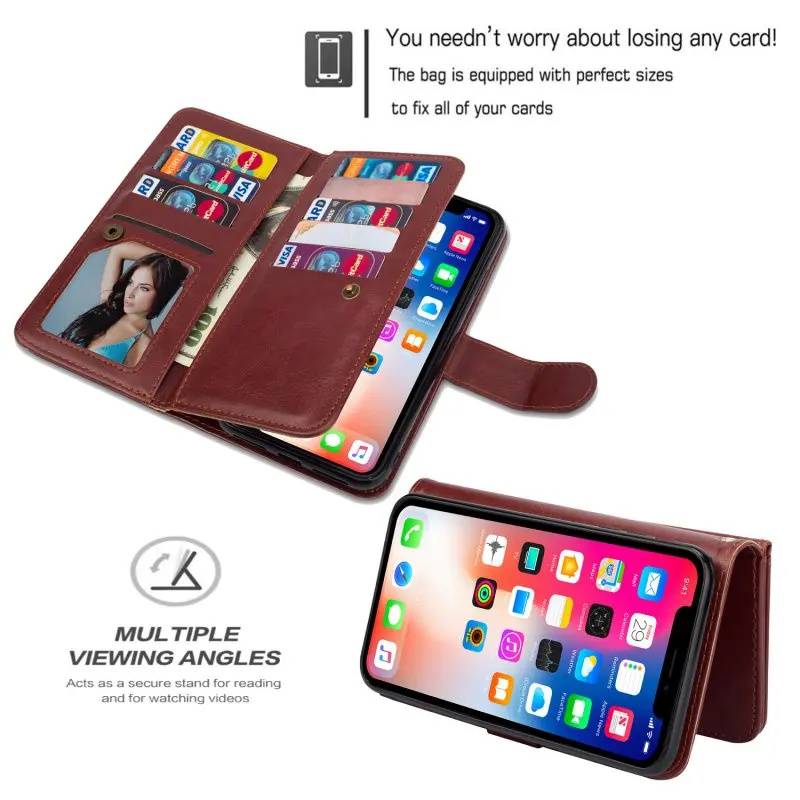 Magnetic Detachable Phone Cases Wallet for iPhone XS Max Case Leather for iPhone XR XS Max Cover Flip With 9 Credit Card Slots