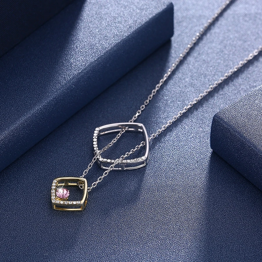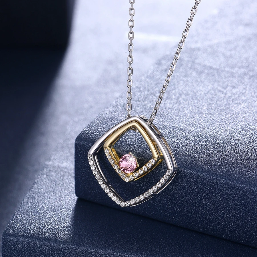 MALANDA Crystal From Swarovski Silver Glod Color Geometric Pendant Necklaces For Women Sterling Silver Necklace Jewelry Gift