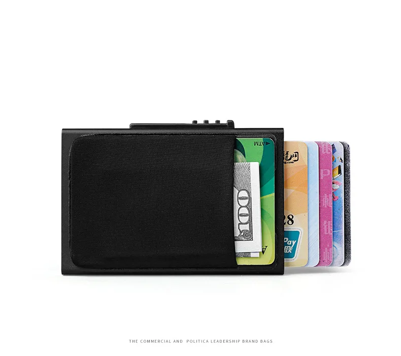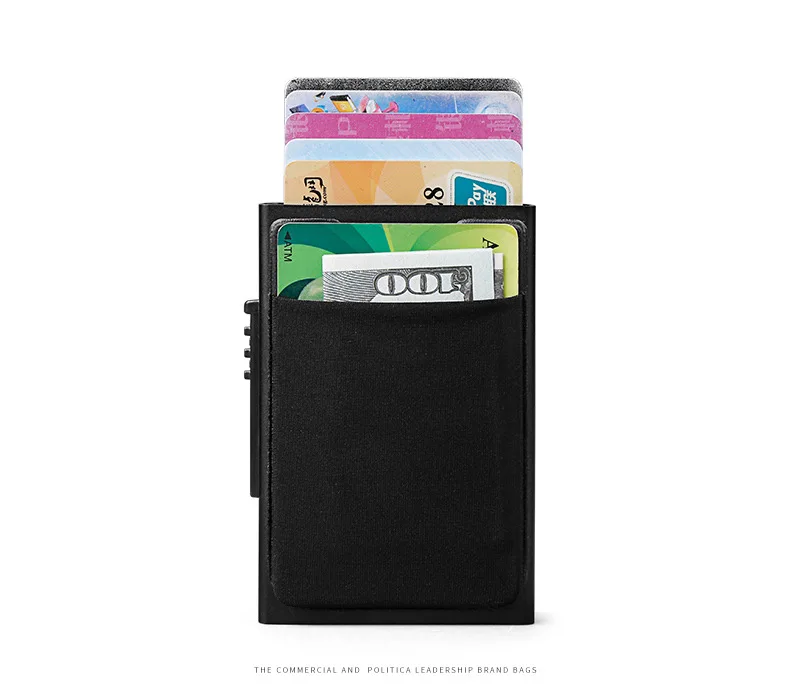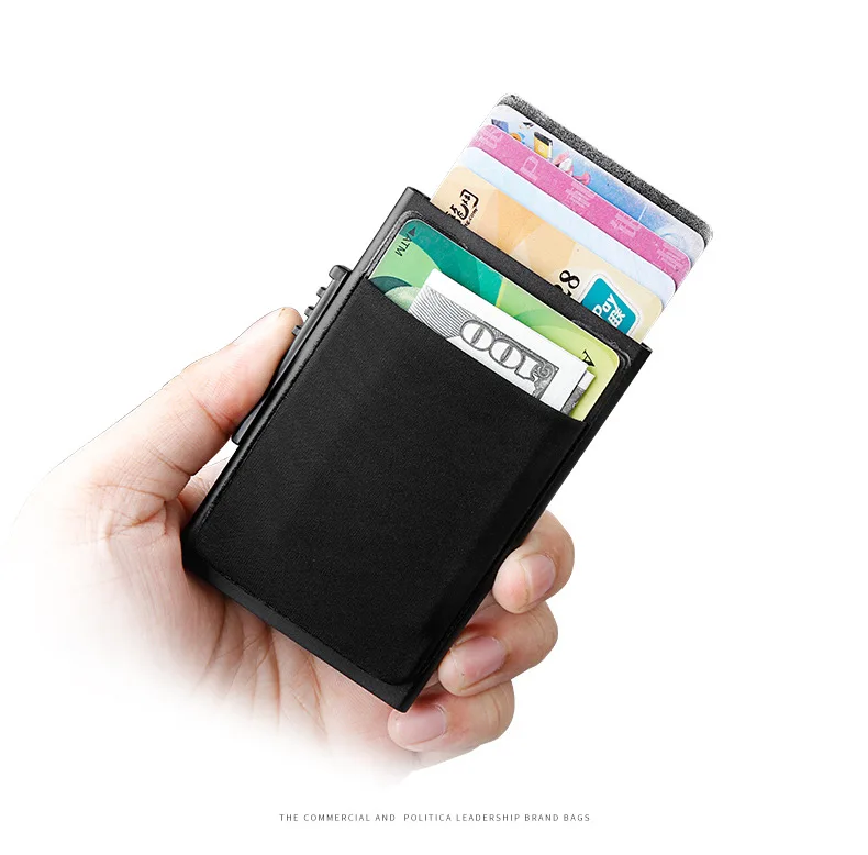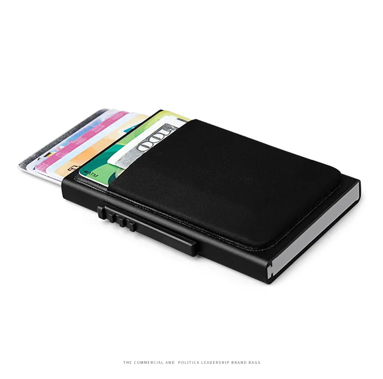 Man Credit Card Holder Slim Minimalist Aluminum Holders RFID Blocking Pop Up Leather Card Case Coin Purse 50% OFF Promotion